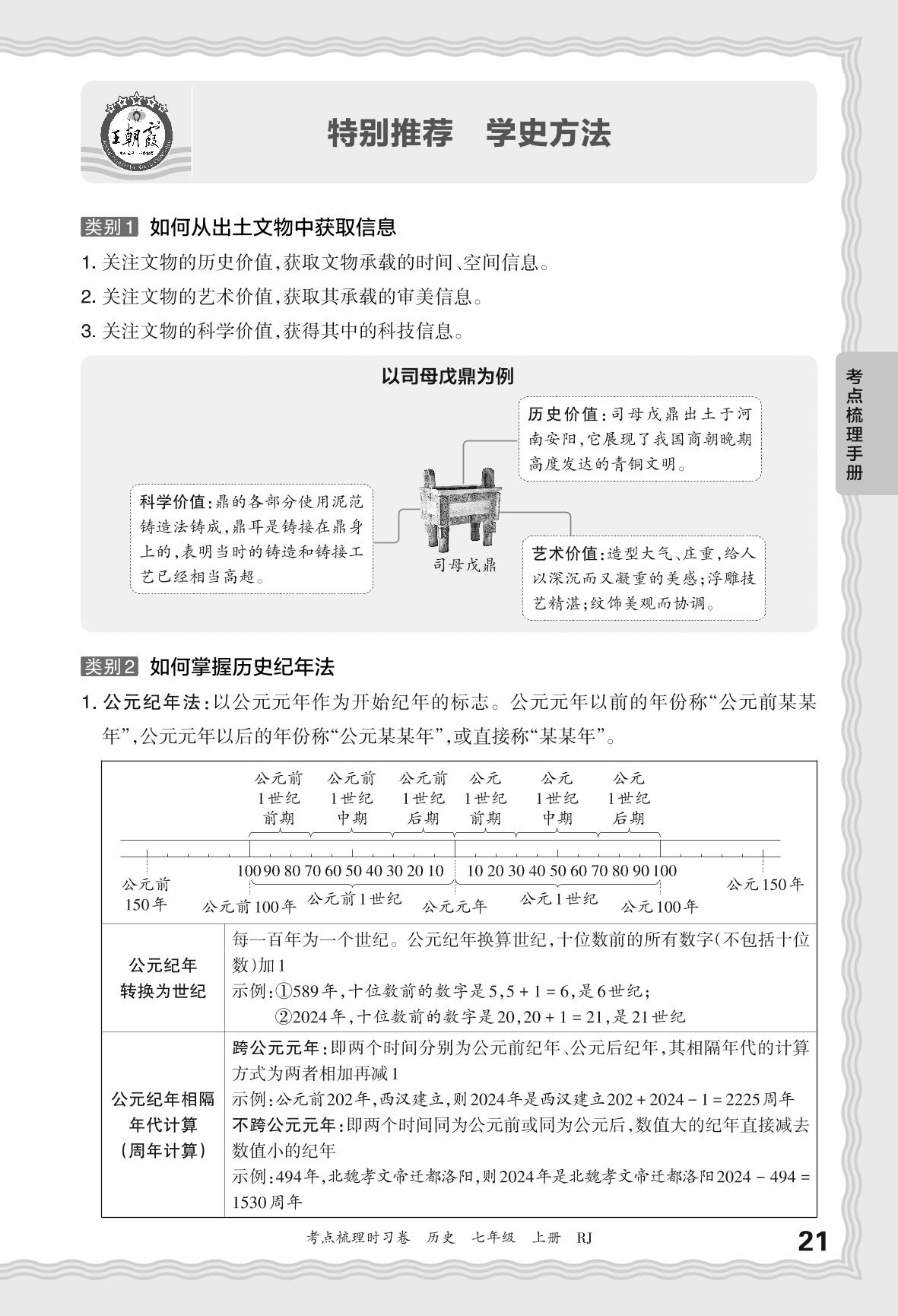 2024秋上册七年级历史人教版 考点梳理手册——特别推荐 学史方法