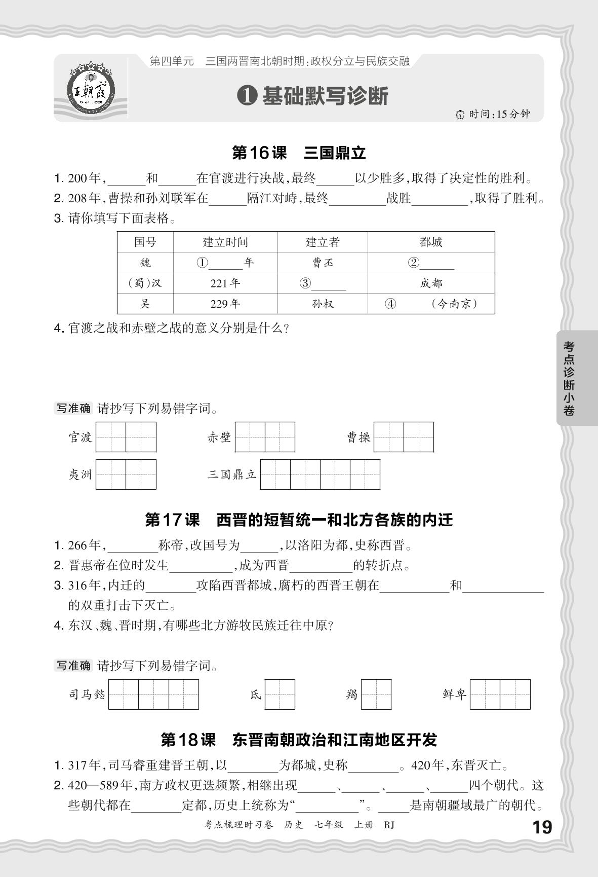 2024秋上册七年级历史人教版 考点诊断小卷——第四单元 基础默写诊断