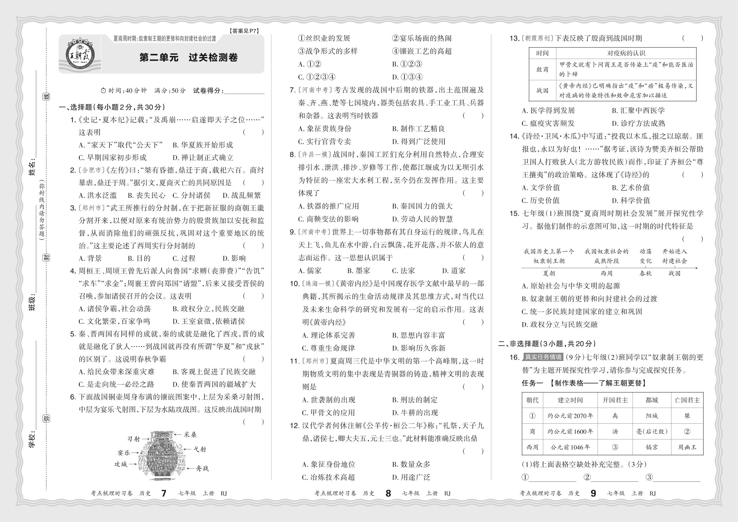 七年级历史人教版(2024)上册单元卷