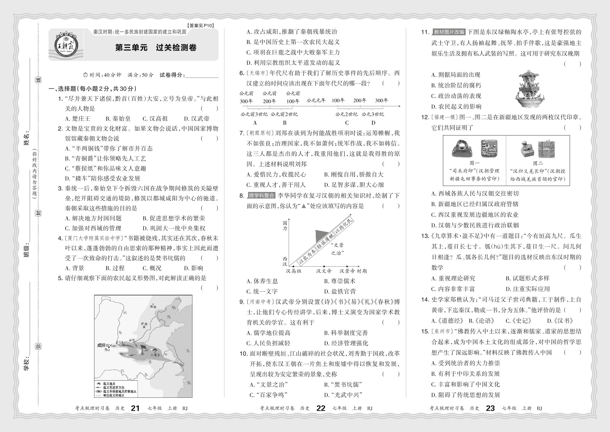 2024秋上册七年级历史人教版 第三单元 过关检测卷