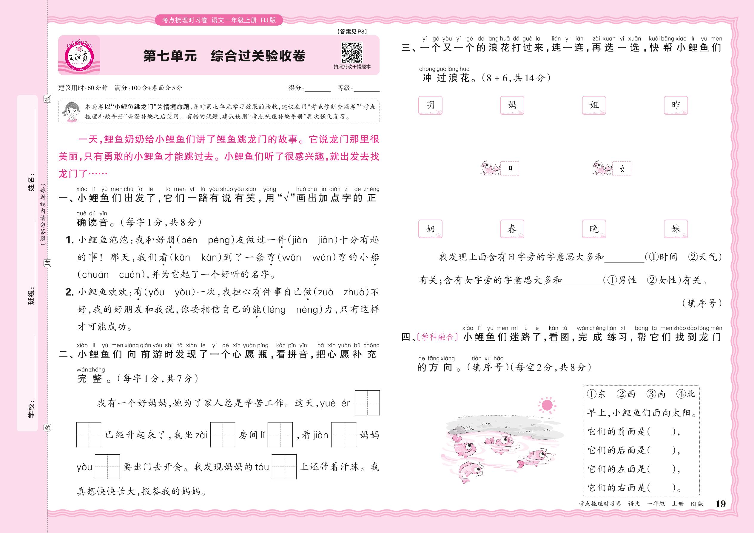 2024秋上册一年级语文人教版 第七单元 综合过关验收卷