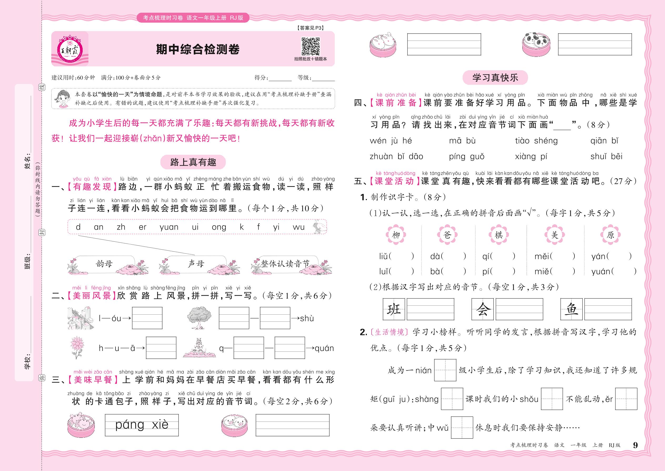 一年级语文人教版(2024)上册期中卷