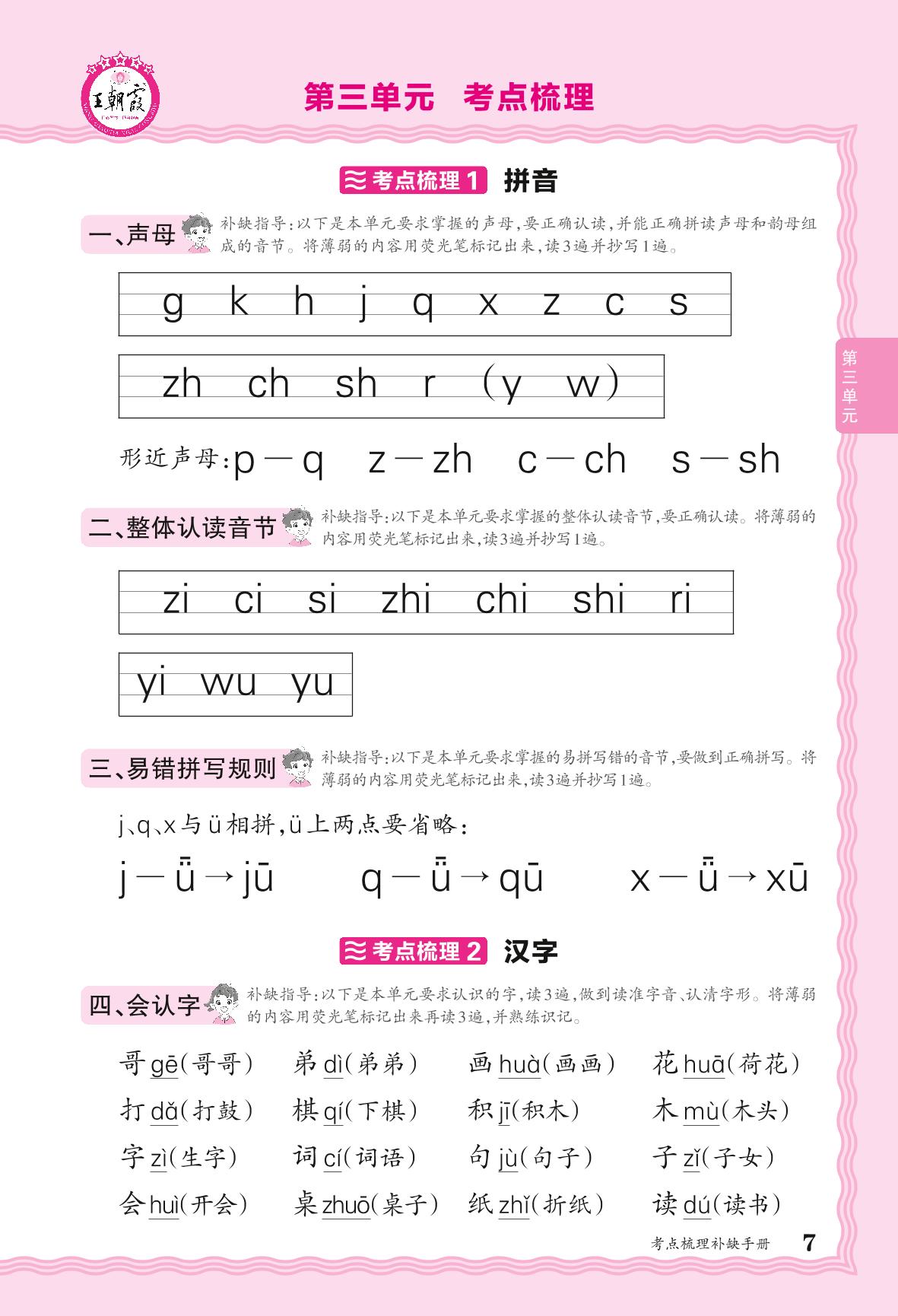2024秋上册一年级语文人教版 考点梳理补缺手册——第三单元 考点梳理