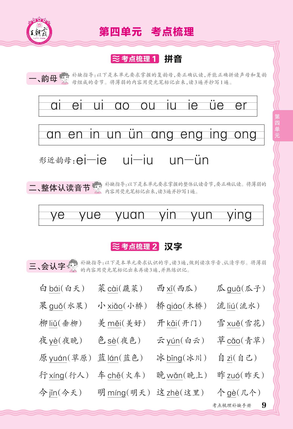 2024秋上册一年级语文人教版 考点梳理补缺手册——第四单元 考点梳理