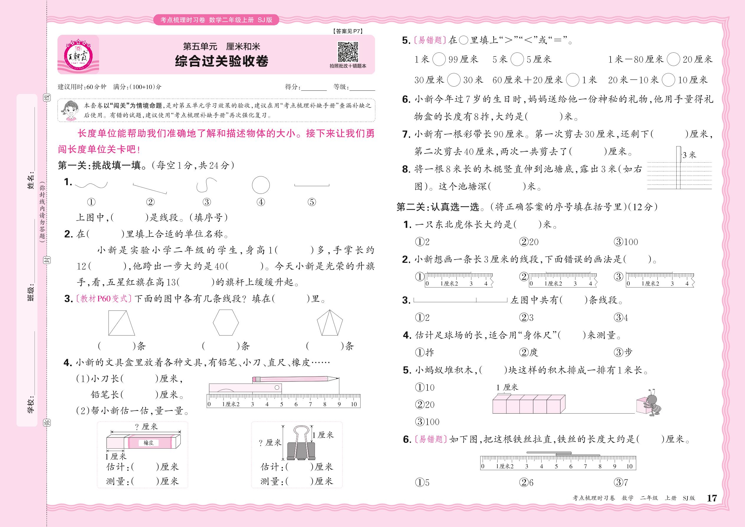 2024秋上册二年级数学苏教版 第五单元 综合过关验收卷