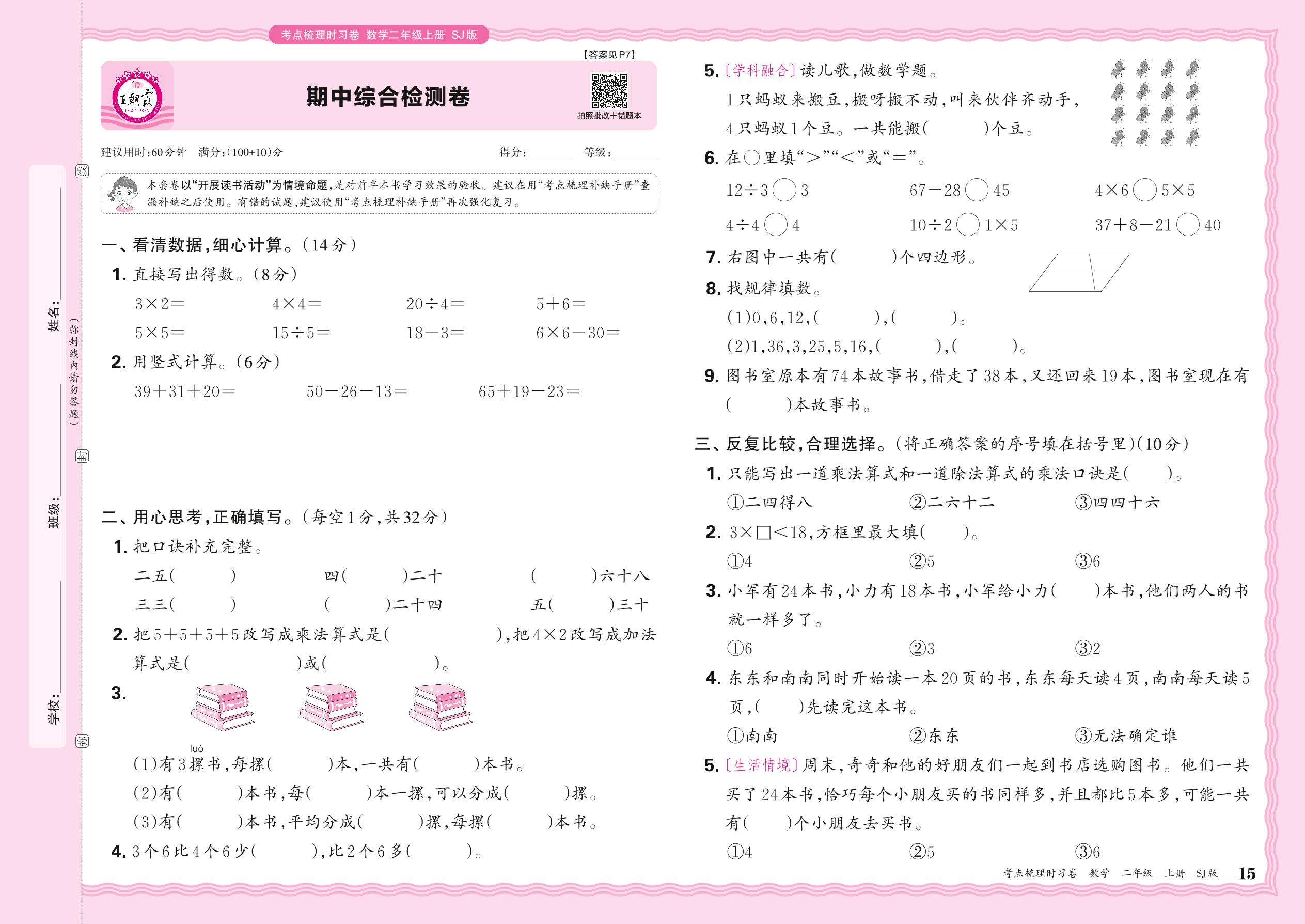 二年级数学苏教版上册期中卷