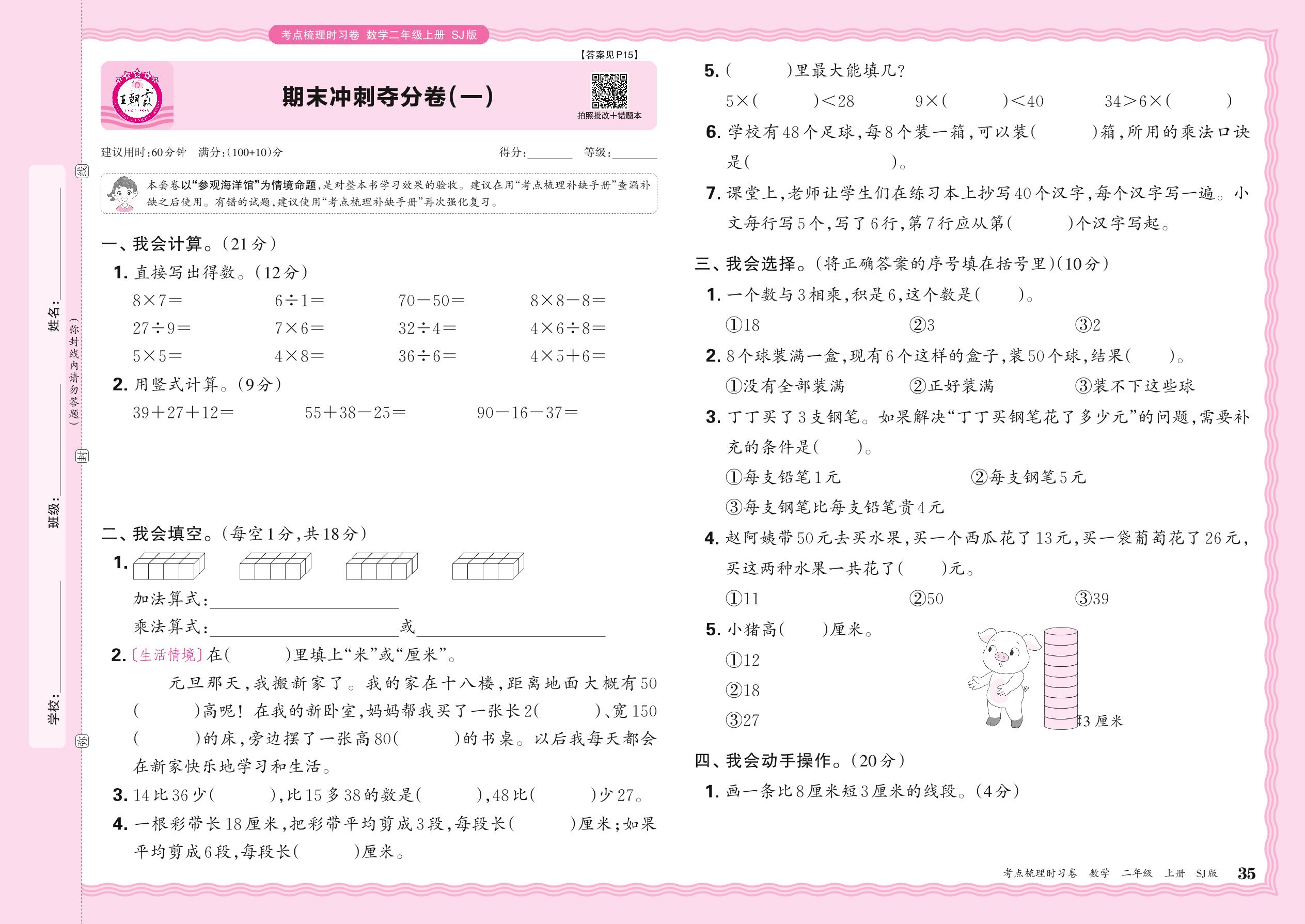 2024秋上册二年级数学苏教版 期末冲刺夺分卷(一)