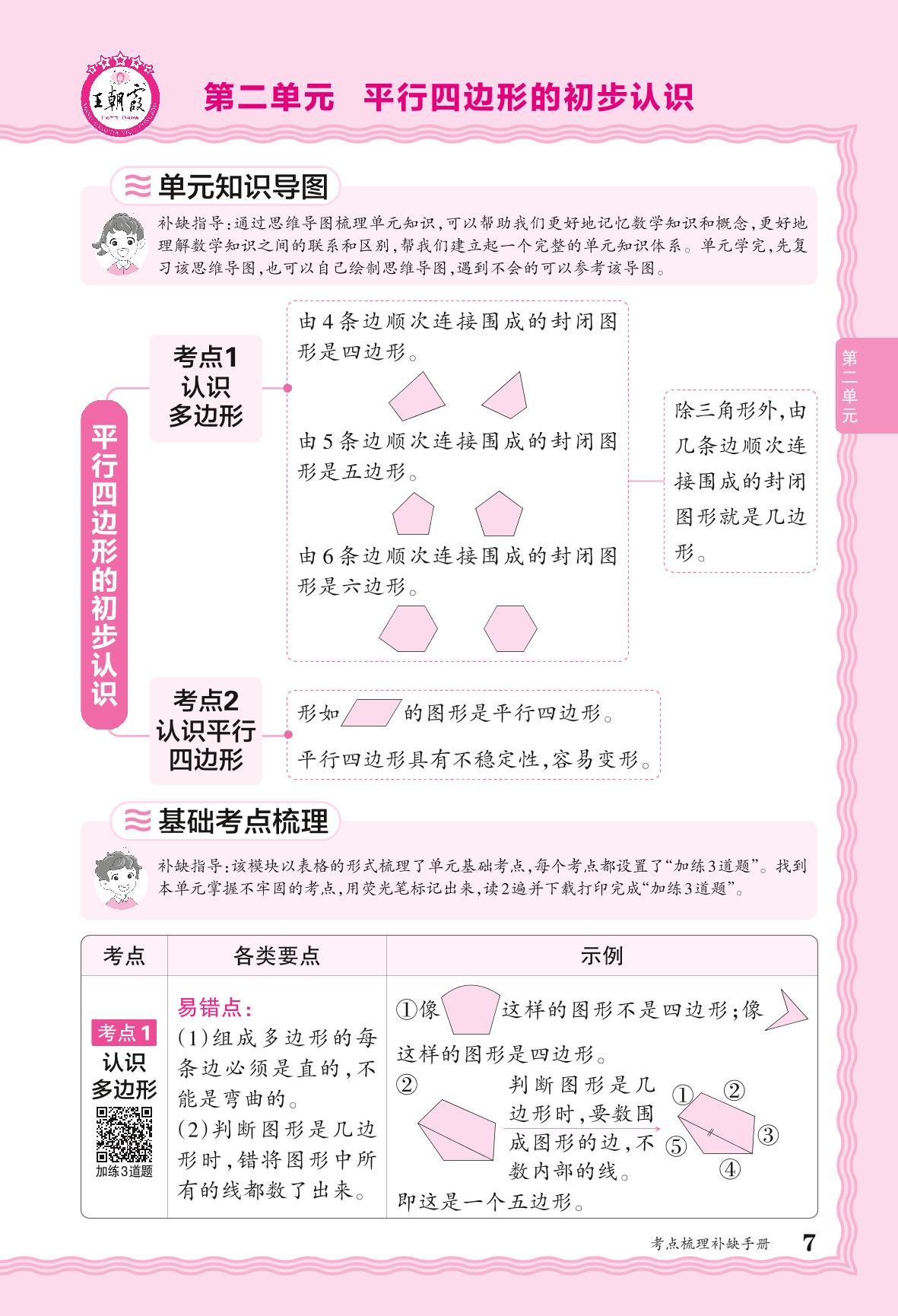 2024秋上册二年级数学苏教版 考点梳理补缺手册——第二单元 平行四边形的初步认识