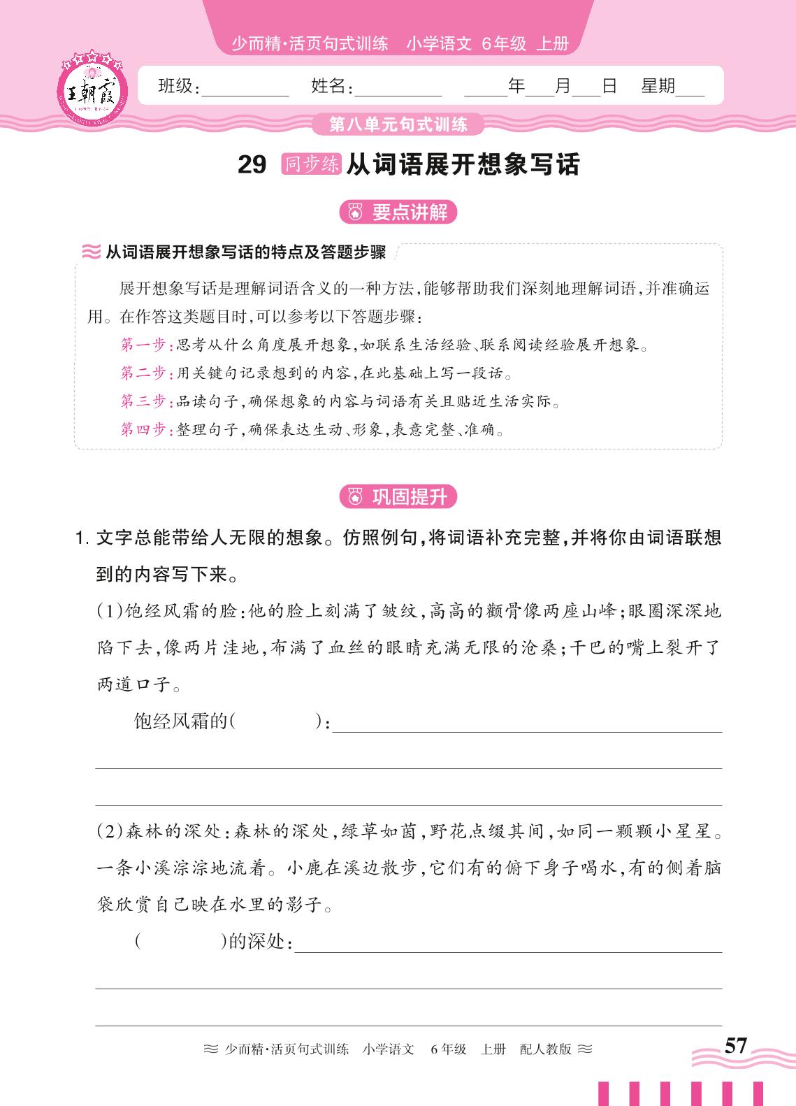 2024秋上册六年级语文人教版 第八单元句式训练——29. 从词语展开想象写话