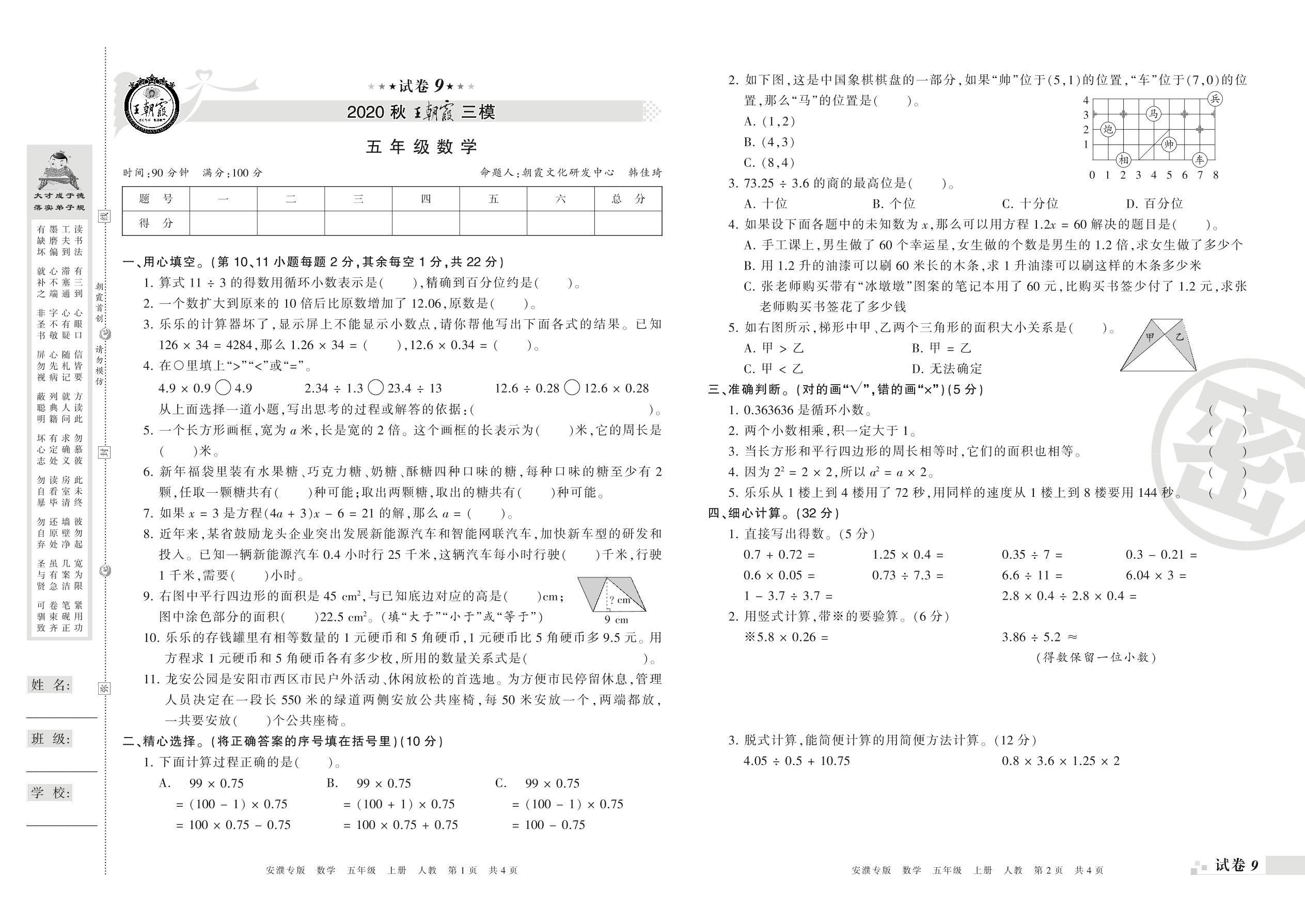 王朝霞期末模拟卷五年级上册数学(人教版)_R210804164445【9】
