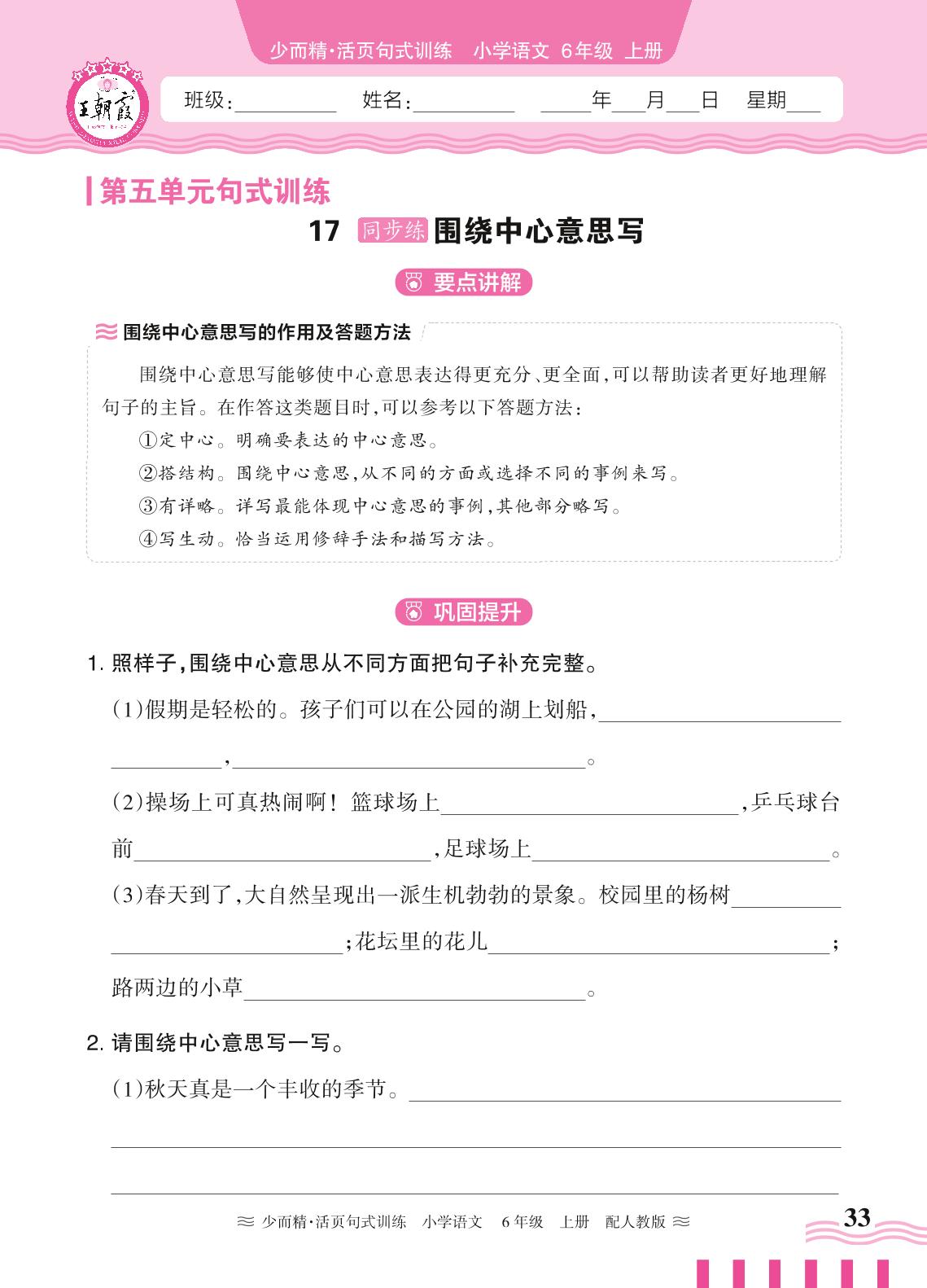 2024秋上册六年级语文人教版 第五单元句式训练——17. 围绕中心意思写