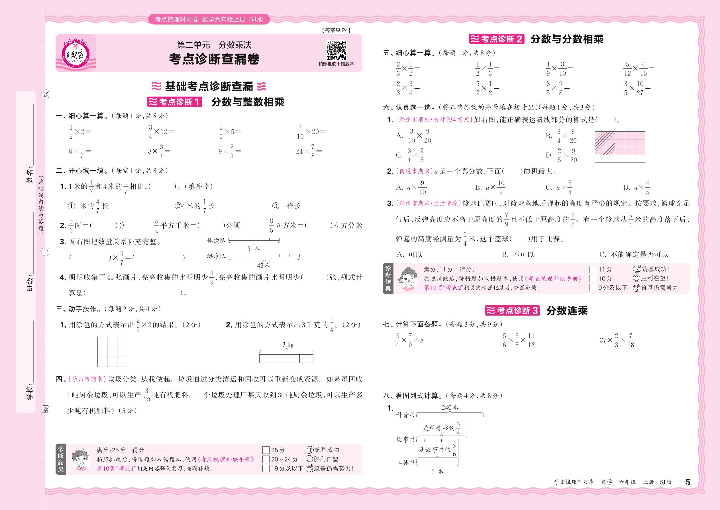 2024秋上册六年级数学苏教版 第二单元 考点诊断查漏卷