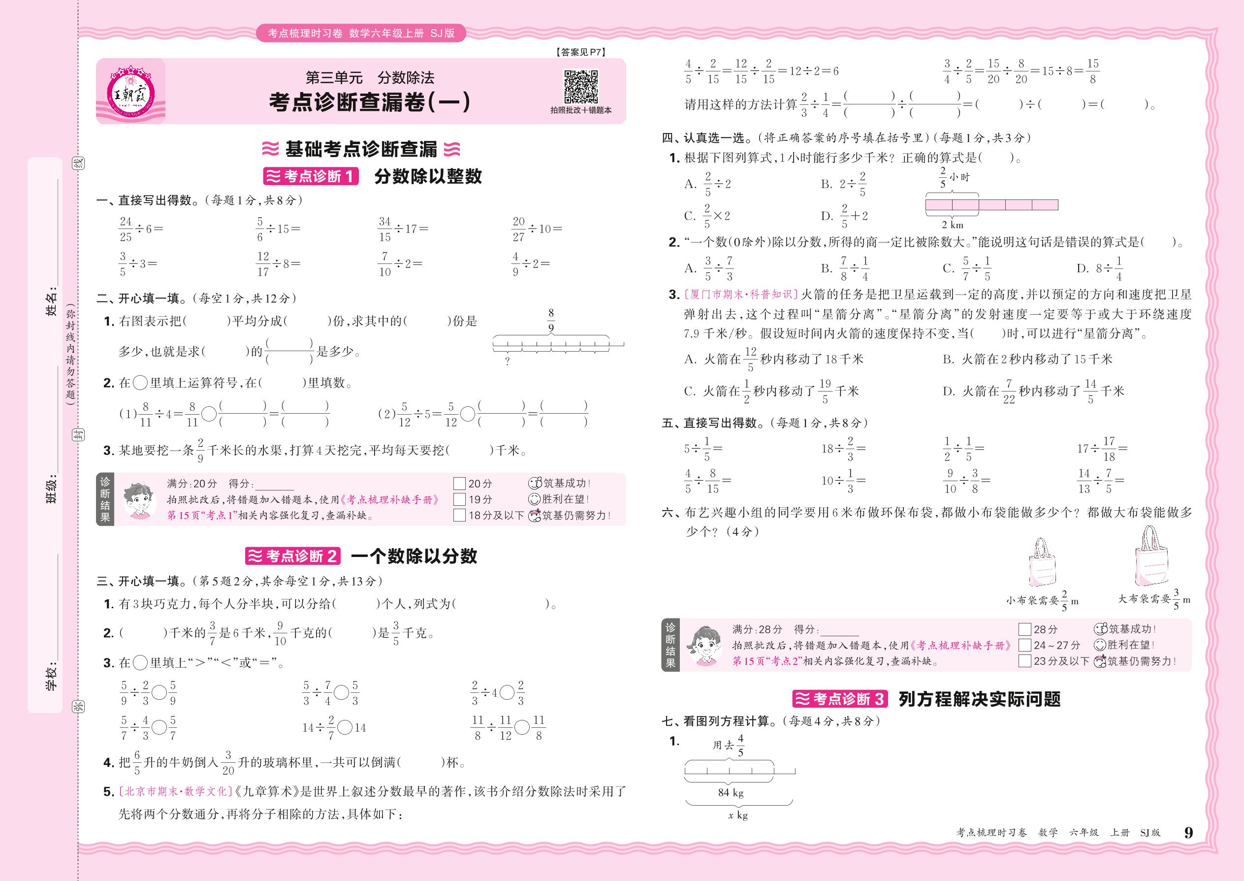 2024秋上册六年级数学苏教版 第三单元 考点诊断查漏卷(一)