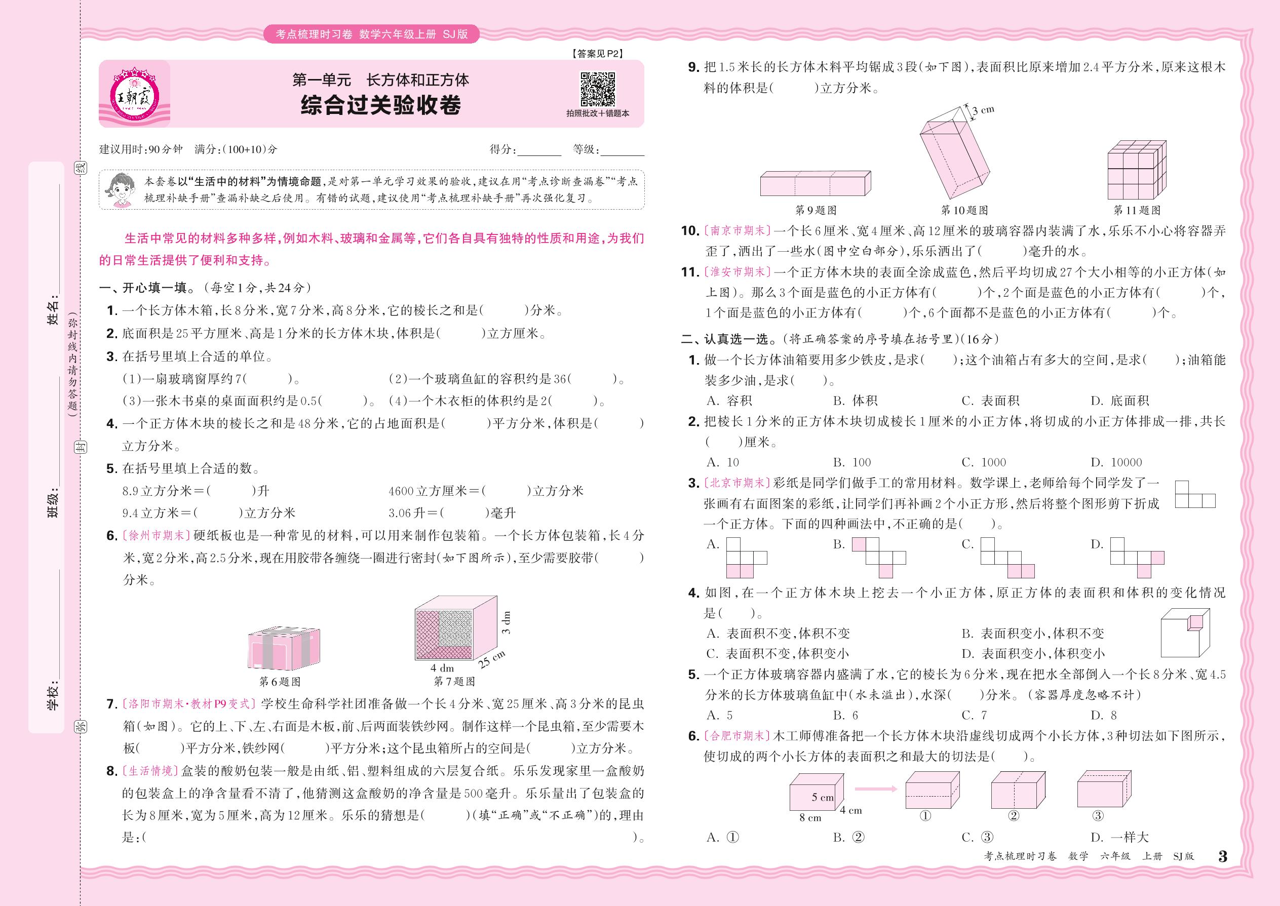 2024秋上册六年级数学苏教版 第一单元 综合过关验收卷