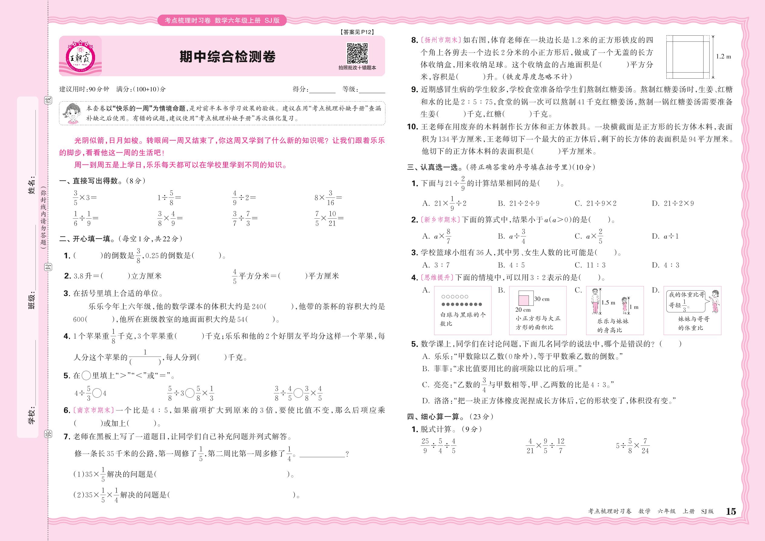 2024秋上册六年级数学苏教版 期中综合检测卷