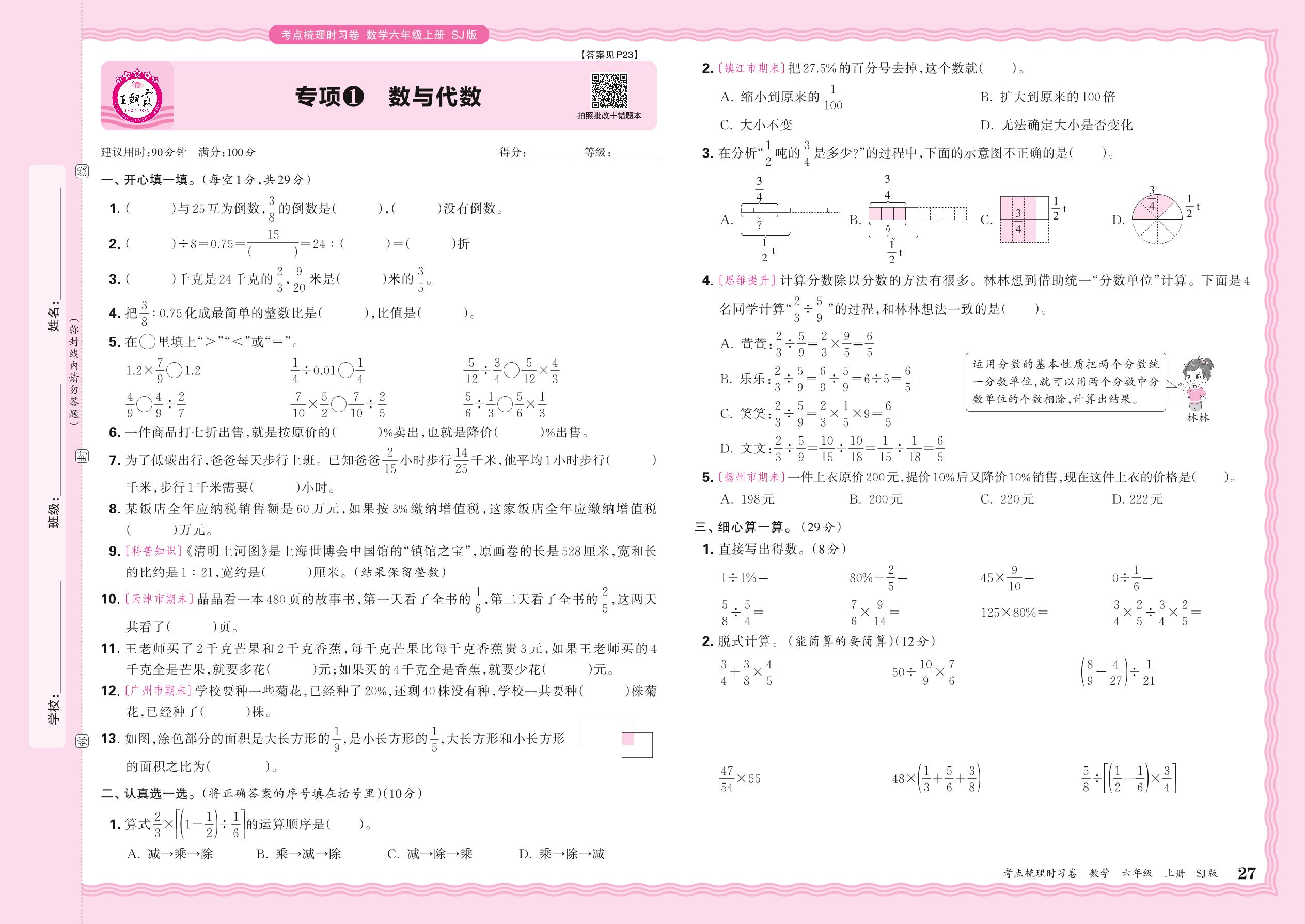 六年级数学苏教版上册专项卷
