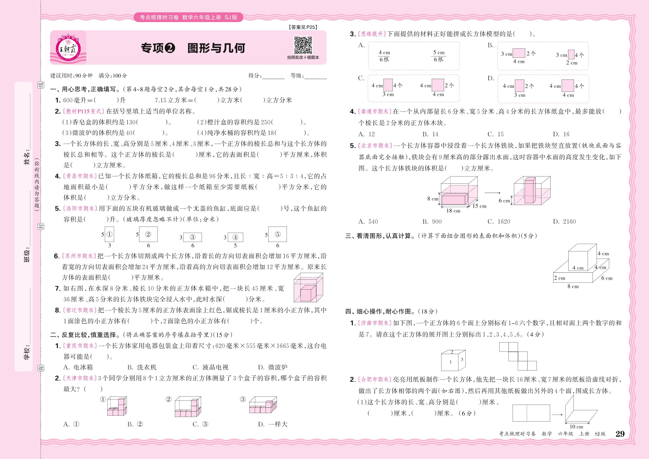 2024秋上册六年级数学苏教版 期末专项卷KD版·图形与几何【2】