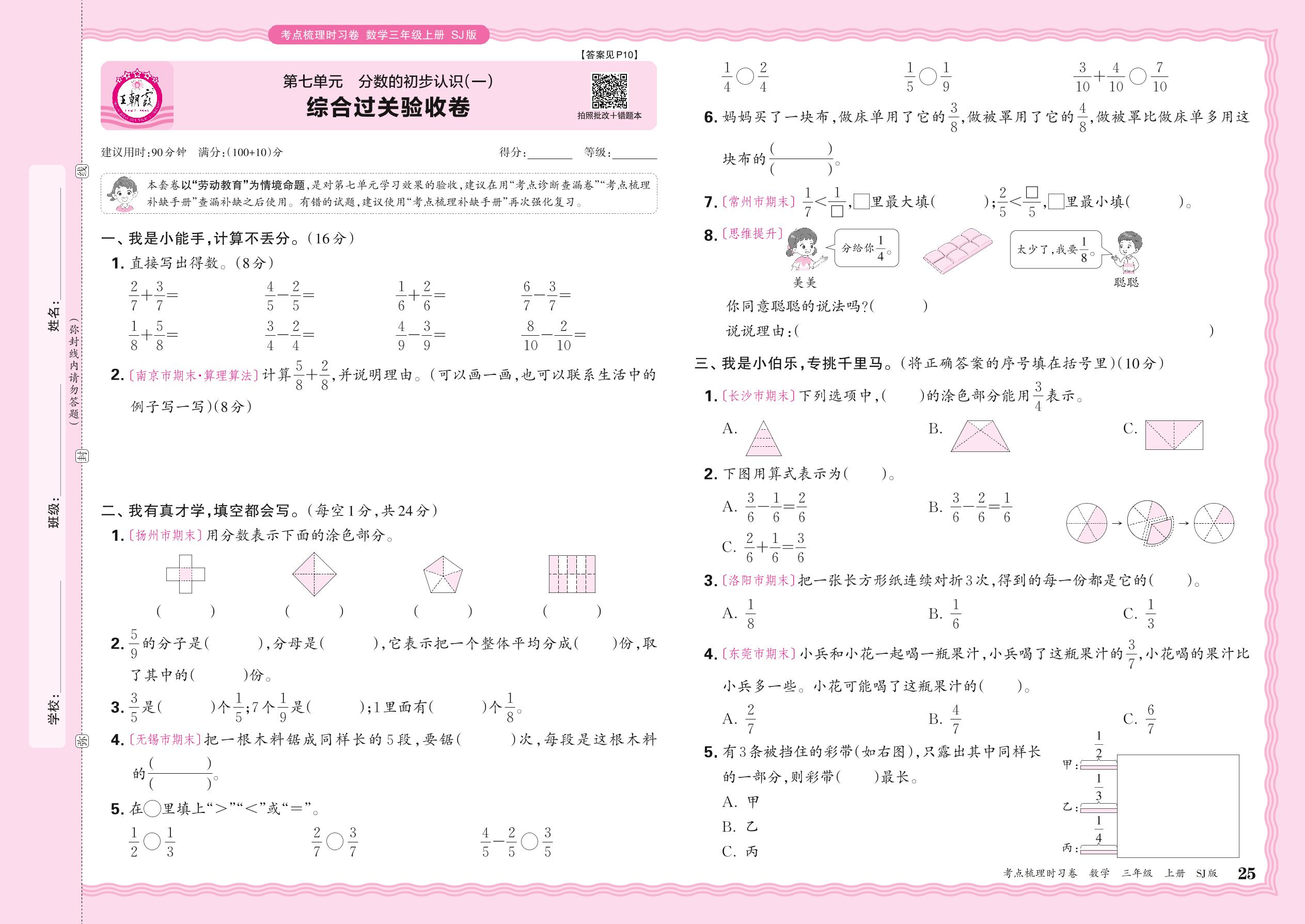 2024秋上册三年级数学苏教版 第七单元 综合过关验收卷