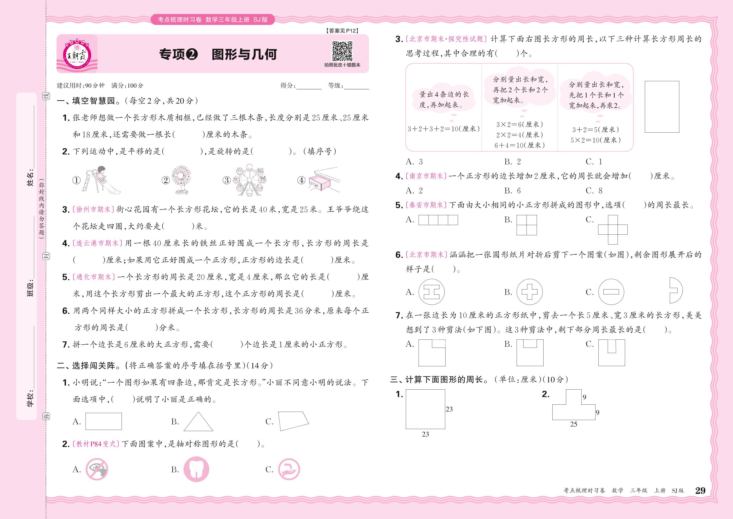2024秋上册三年级数学苏教版 期末专项卷KD版·图形与几何【2】
