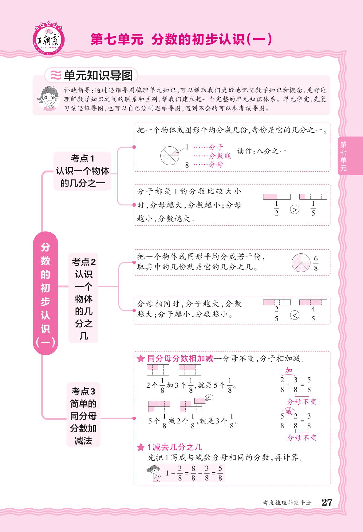 2024秋上册三年级数学苏教版 考点梳理补缺手册——第七单元 分数的初步认识(一)