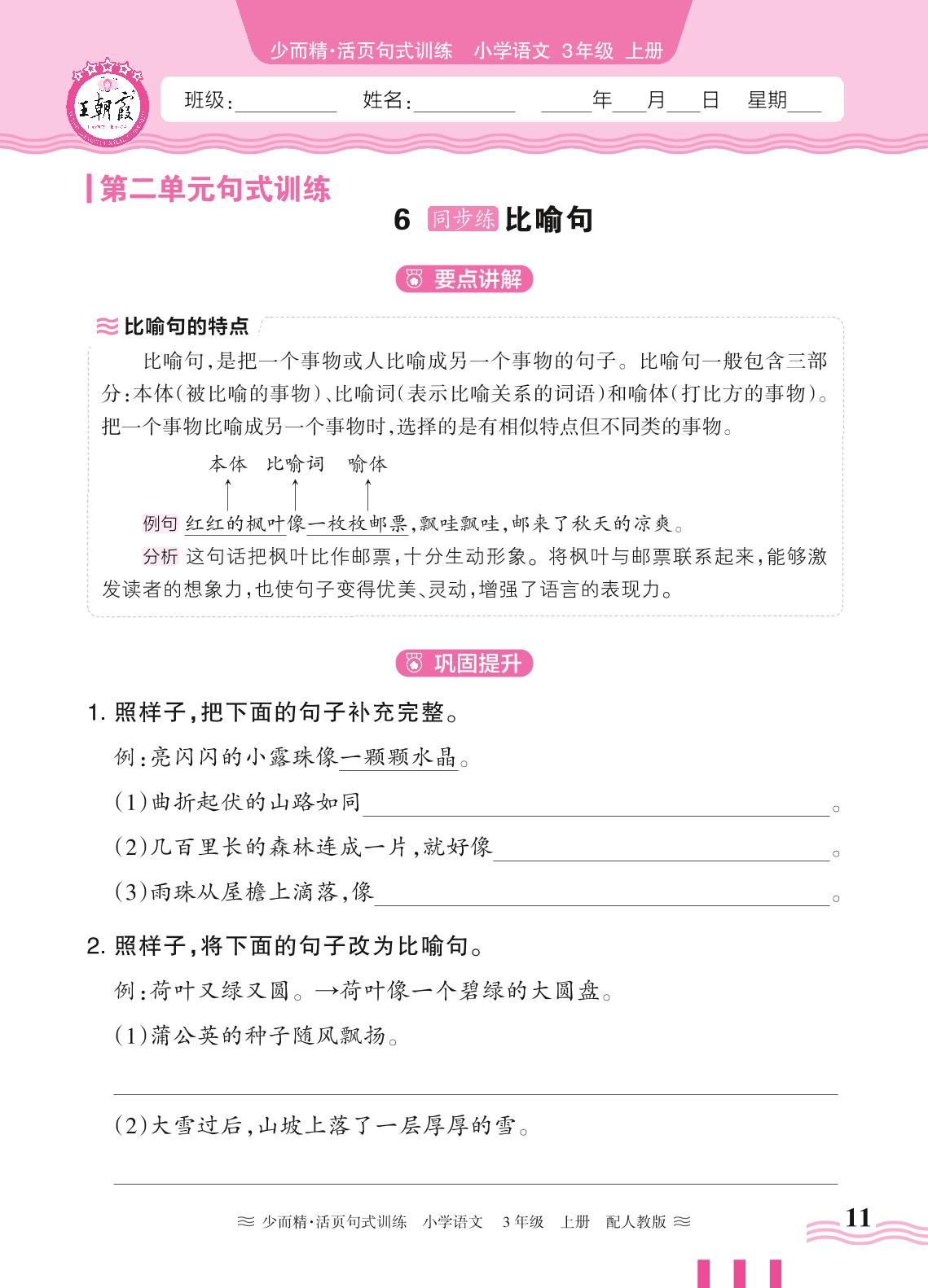 2024秋上册三年级语文人教版 第二单元句式训练——6. 比喻句