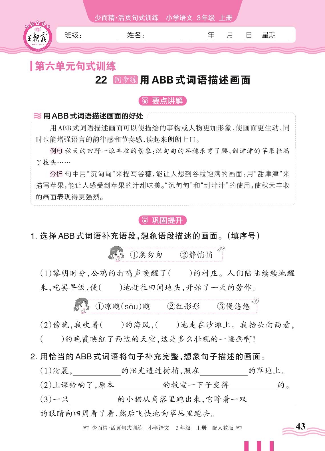 2024秋上册三年级语文人教版 第六单元句式训练——22. 用ABB式词语描述画面