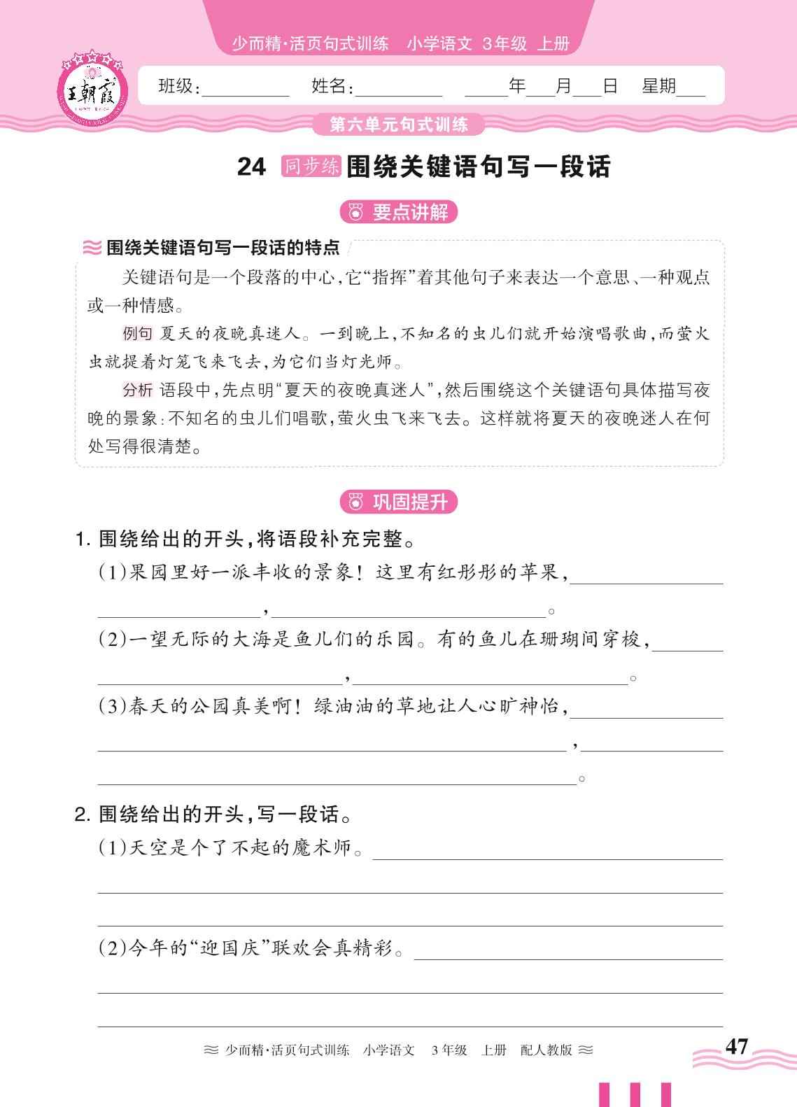 2024秋上册三年级语文人教版 第六单元句式训练——24. 围绕关键语句写一段话