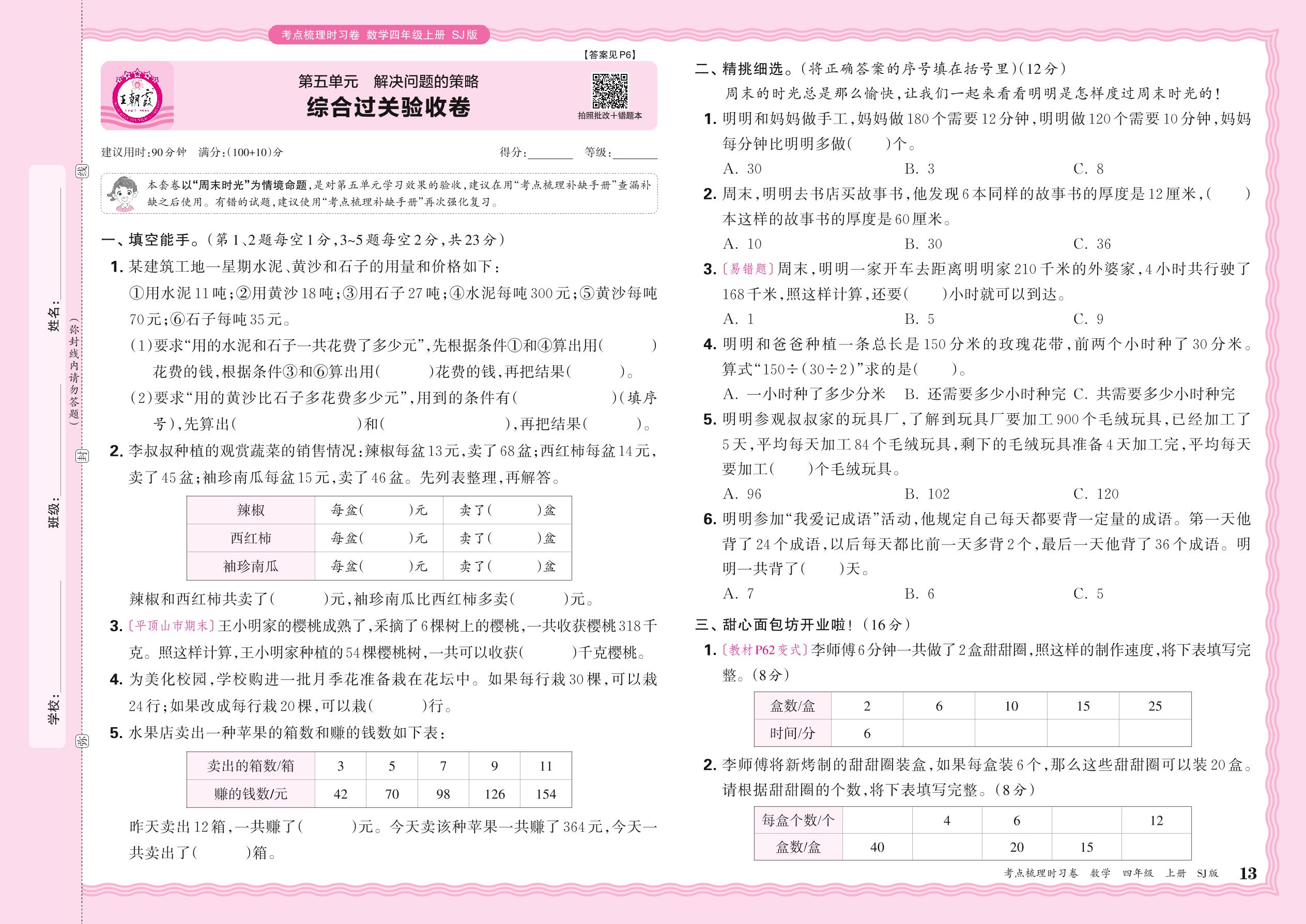2024秋上册四年级数学苏教版 第五单元 综合过关验收卷