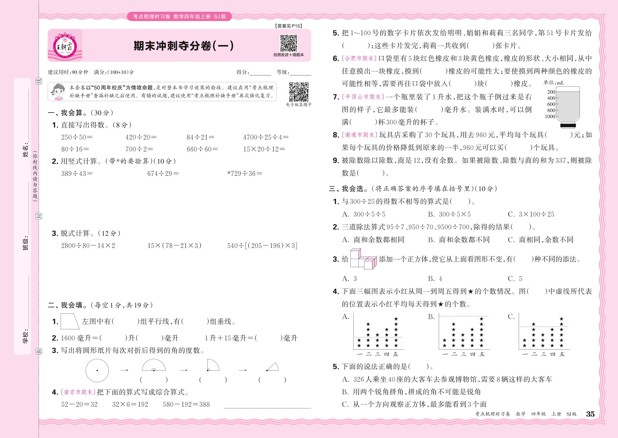 2024秋上册四年级数学苏教版 期末冲刺夺分卷(一)