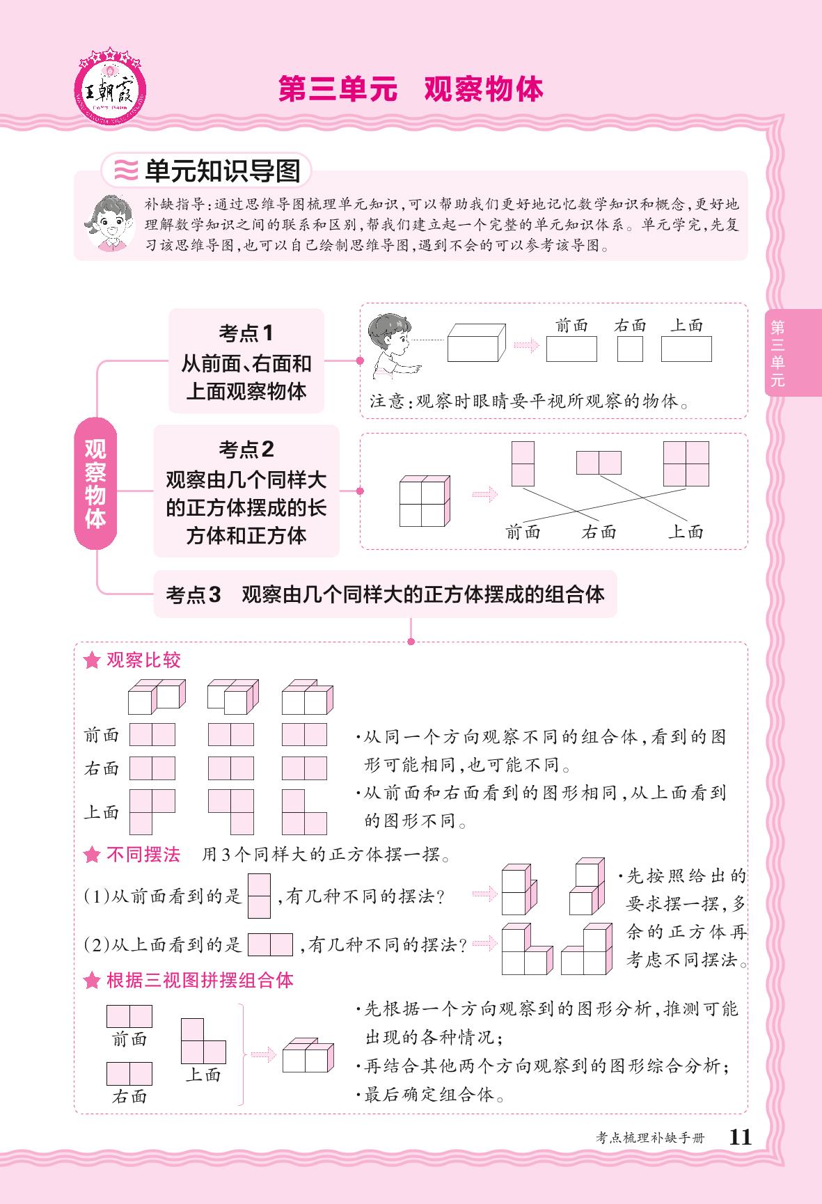 2024秋上册四年级数学苏教版 考点梳理补缺手册——第三单元 观察物体