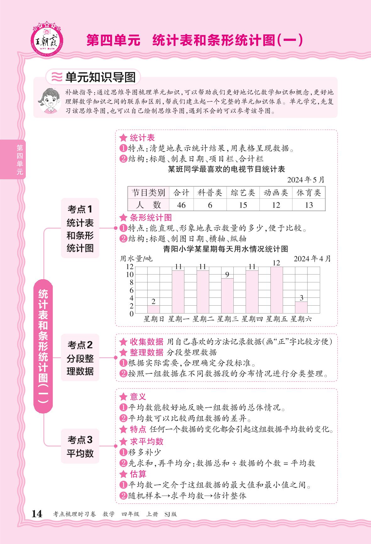 2024秋上册四年级数学苏教版 考点梳理补缺手册——第四单元 统计表和条形统计图(一)