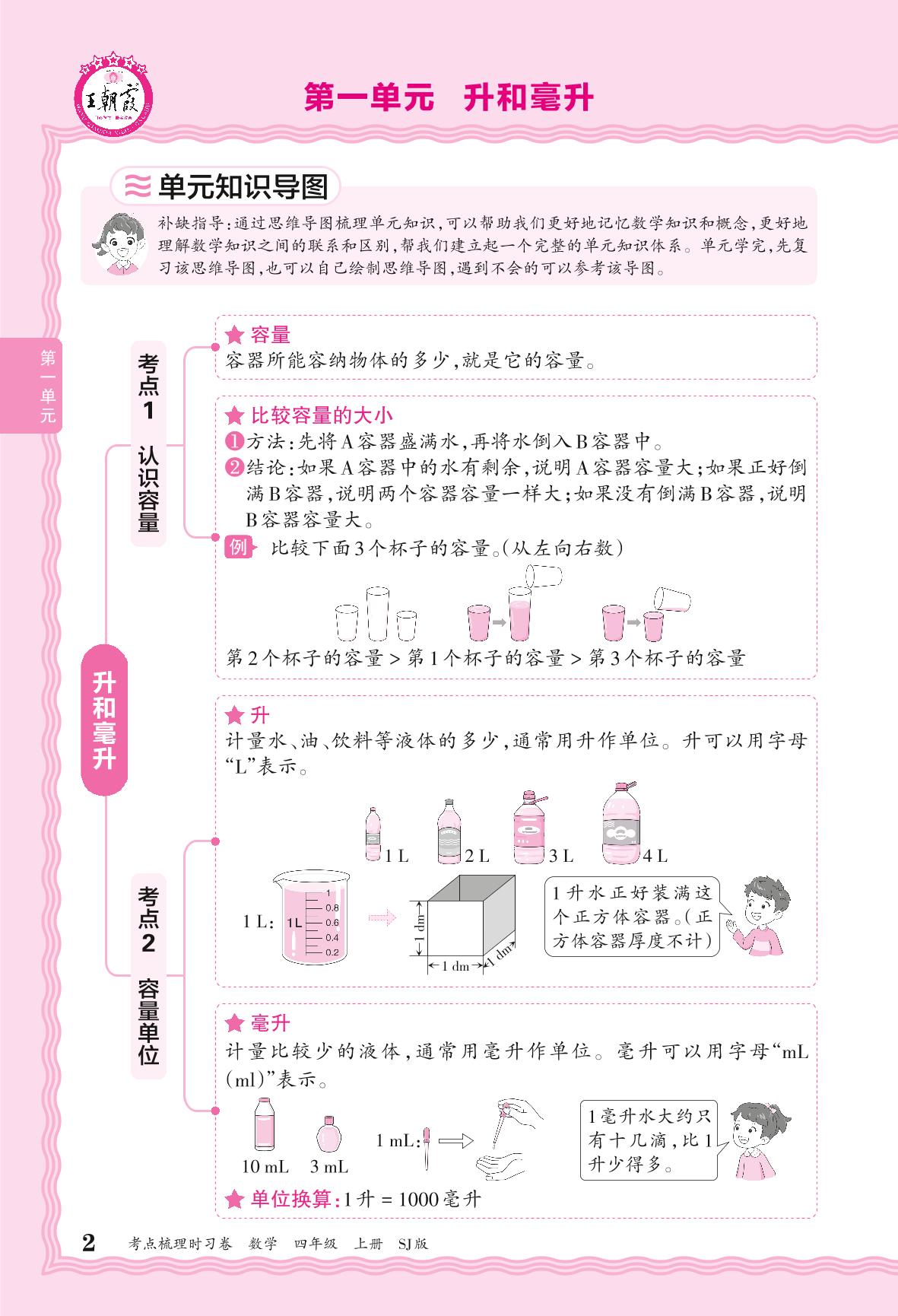 2024秋上册四年级数学苏教版 考点梳理补缺手册——第一单元 升和毫升