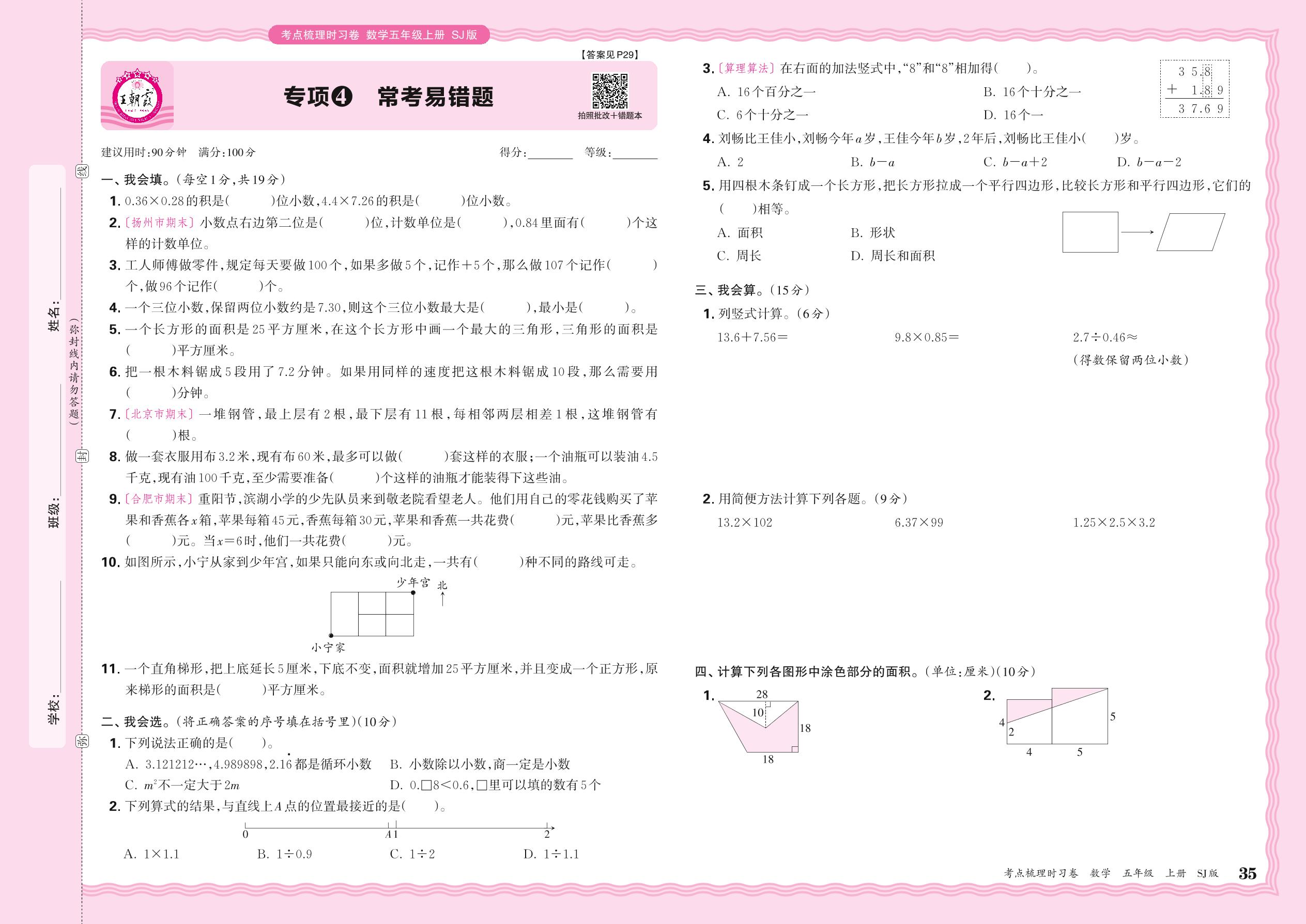 2024秋上册五年级数学苏教版 期末专项卷KD版·常考易错题【4】