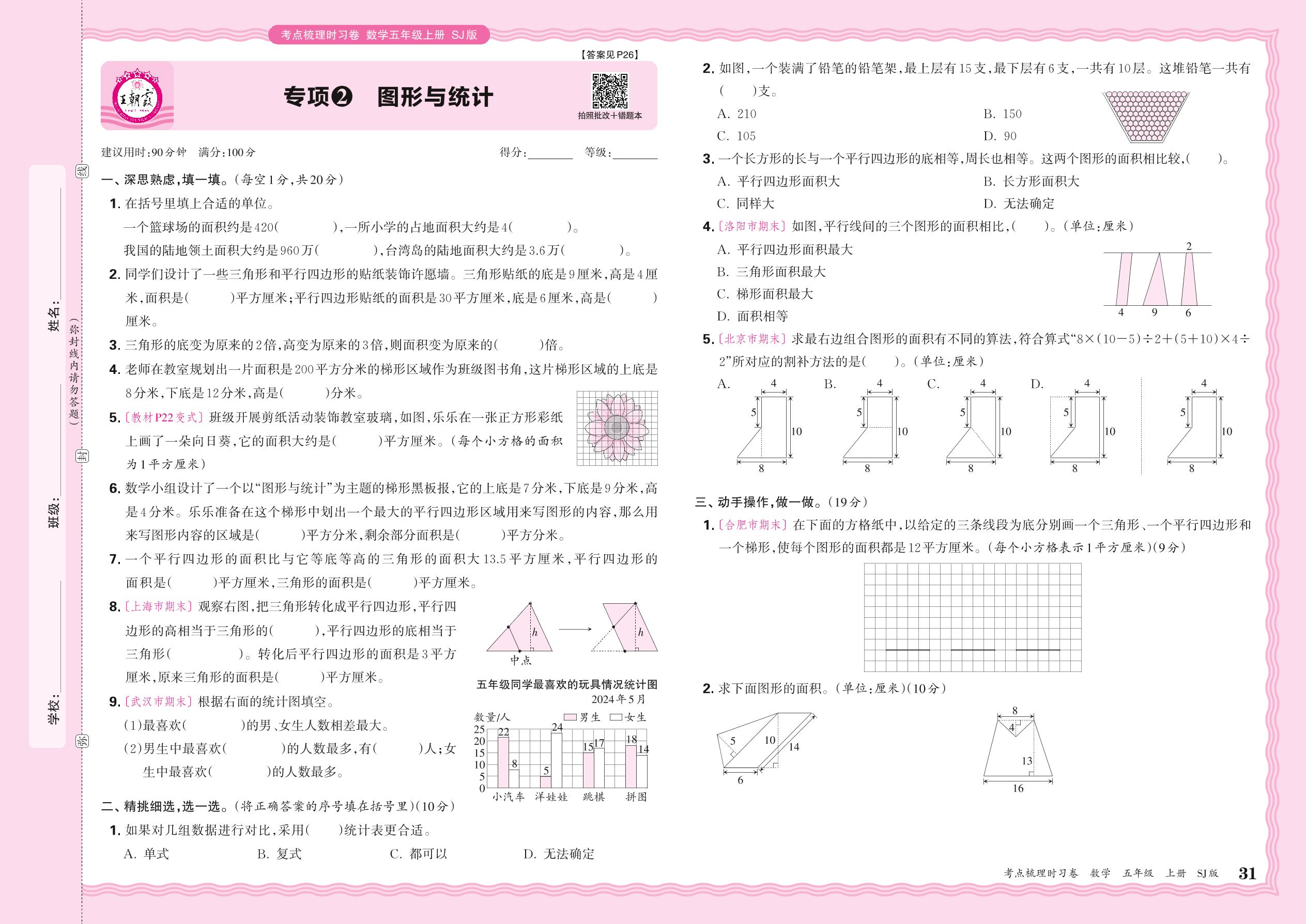 2024秋上册五年级数学苏教版 期末专项卷KD版·图形与统计【2】
