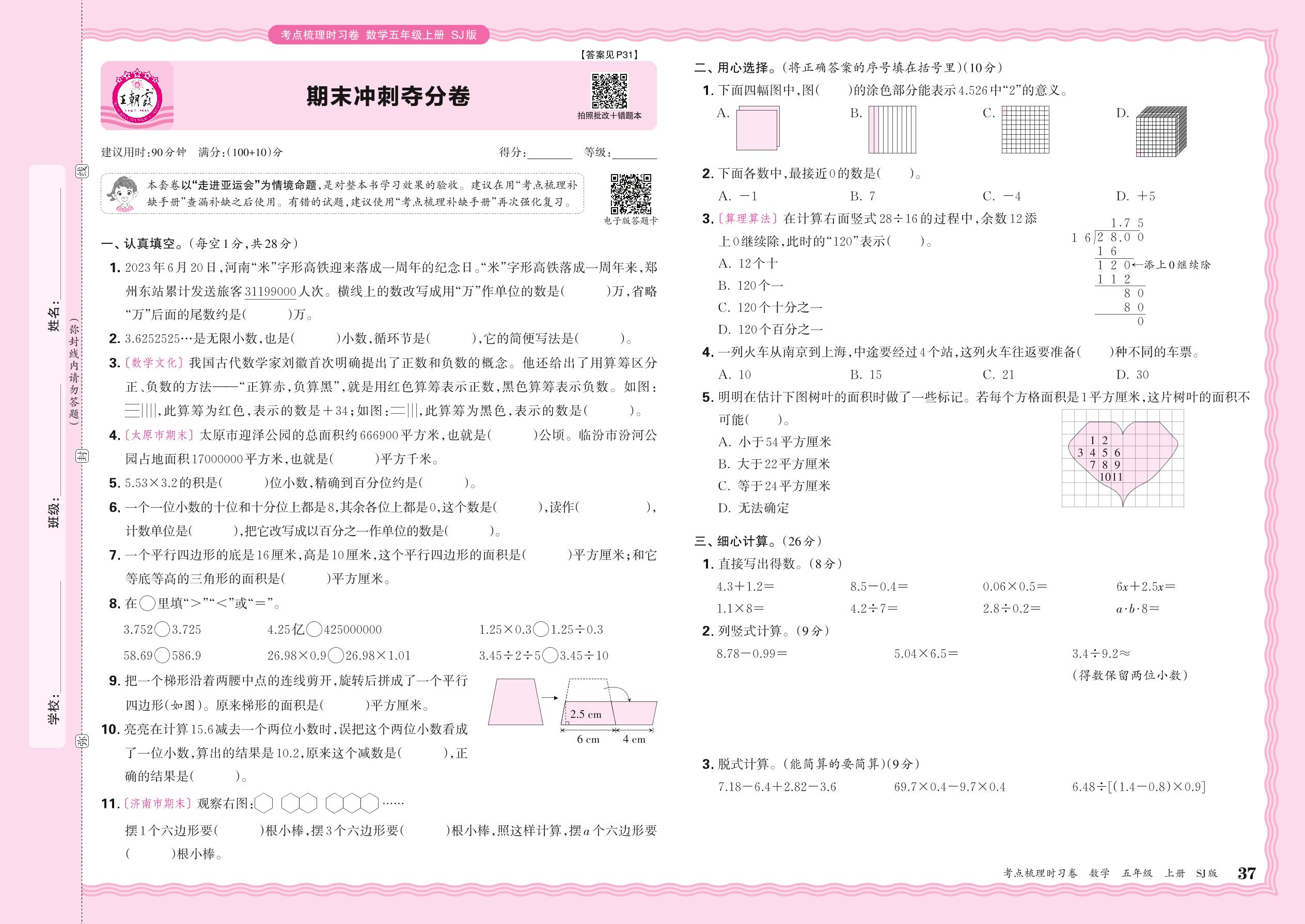 2024秋上册五年级数学苏教版 期末冲刺夺分卷