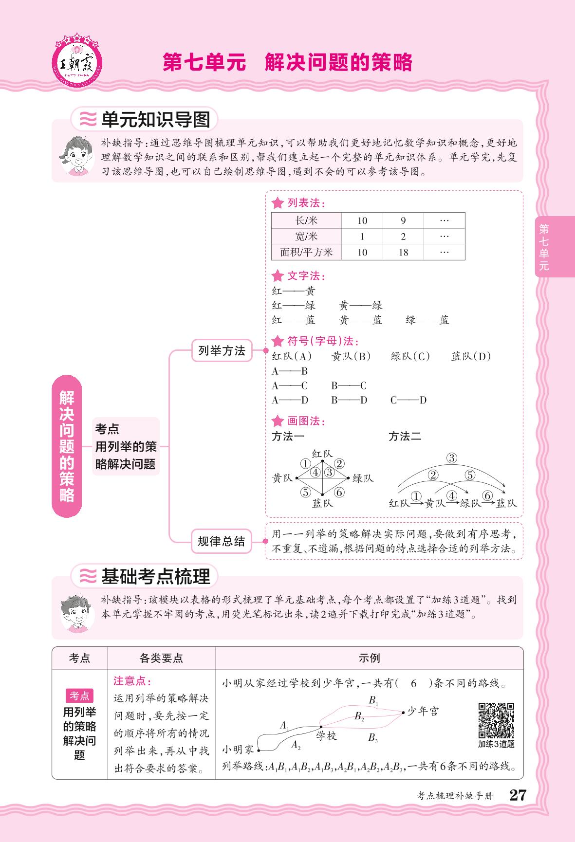 2024秋上册五年级数学苏教版 考点梳理补缺手册——第七单元 解决问题的策略