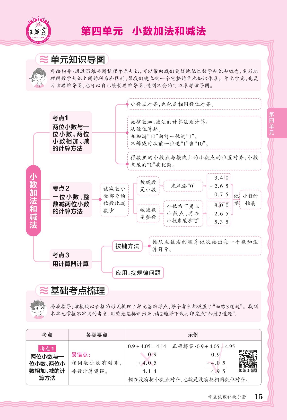 2024秋上册五年级数学苏教版 考点梳理补缺手册——第四单元 小数加法和减法