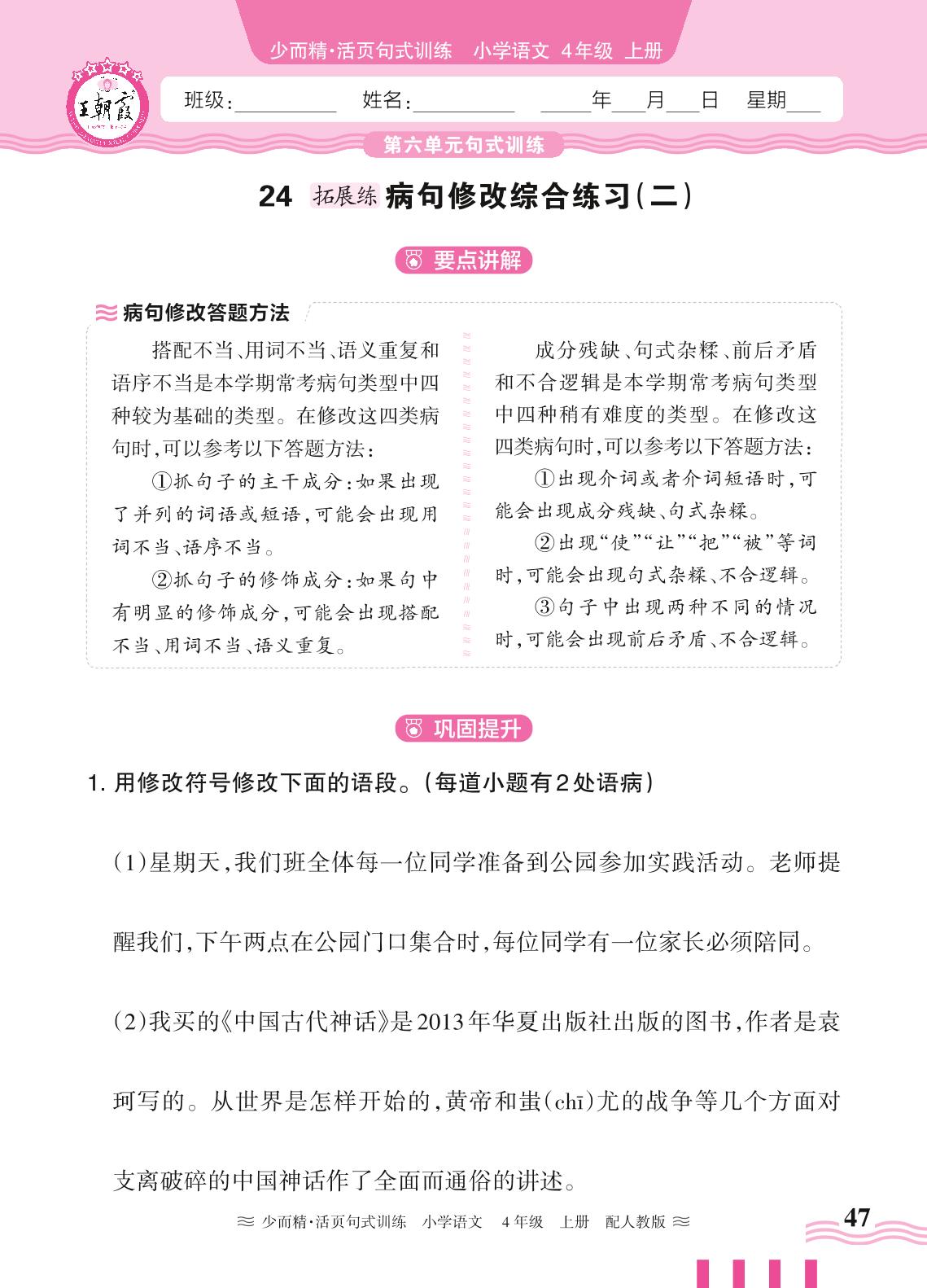 2024秋上册四年级语文人教版 第六单元句式训练——24. 病句修改综合练习(二)