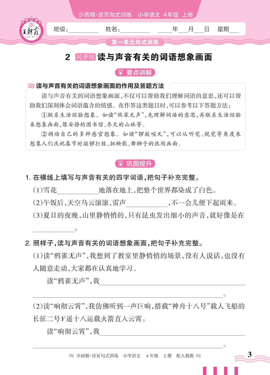 2024秋上册四年级语文人教版 第一单元句式训练——2. 读与声音有关的词语想象画面