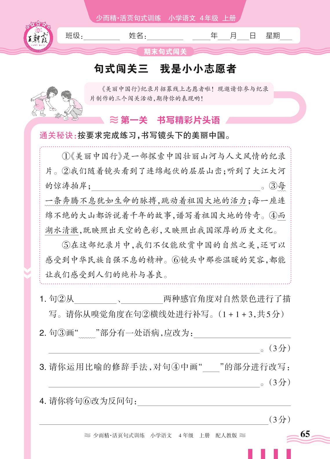 2024秋上册四年级语文人教版 期末句式闯关——句式闯关三:我是小小志愿者
