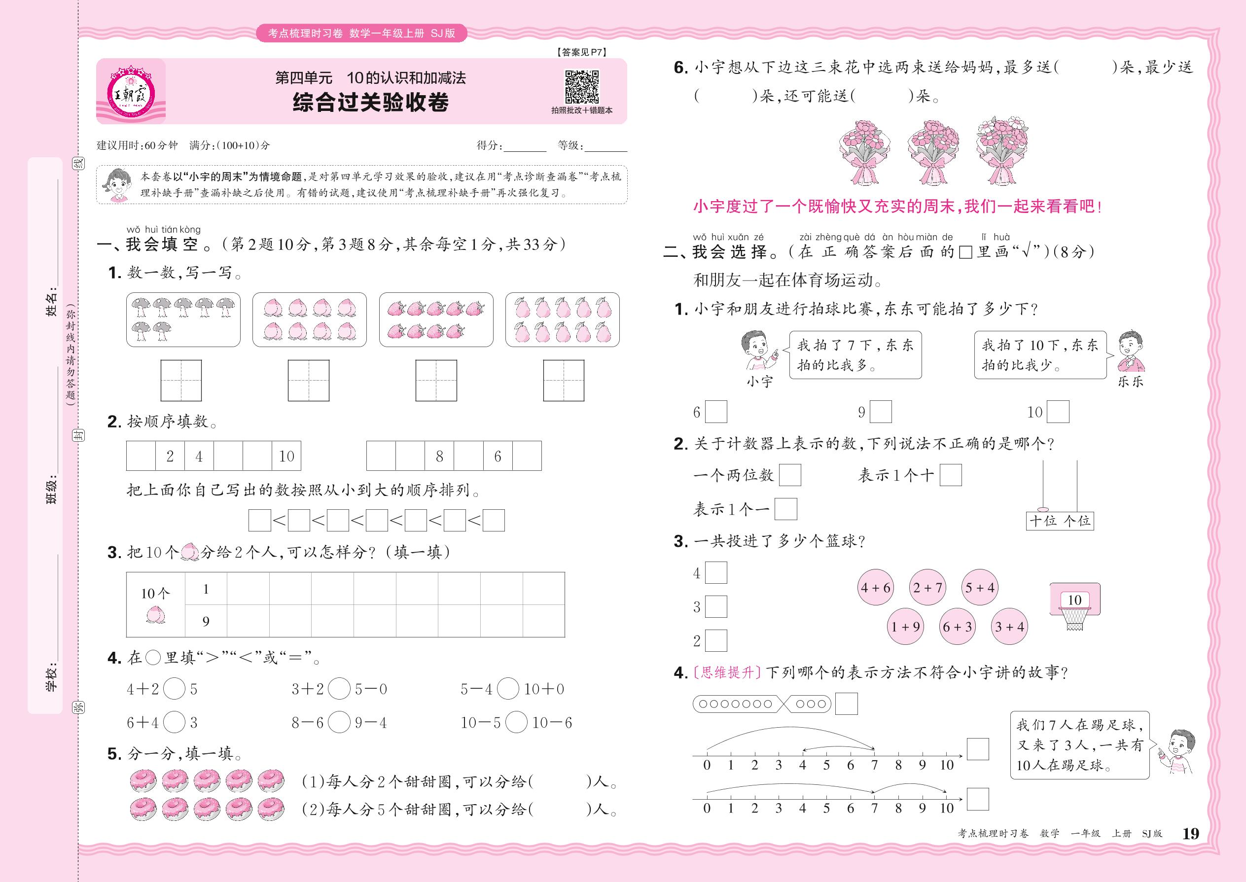 2024秋上册一年级数学苏教版 第四单元 综合过关验收卷