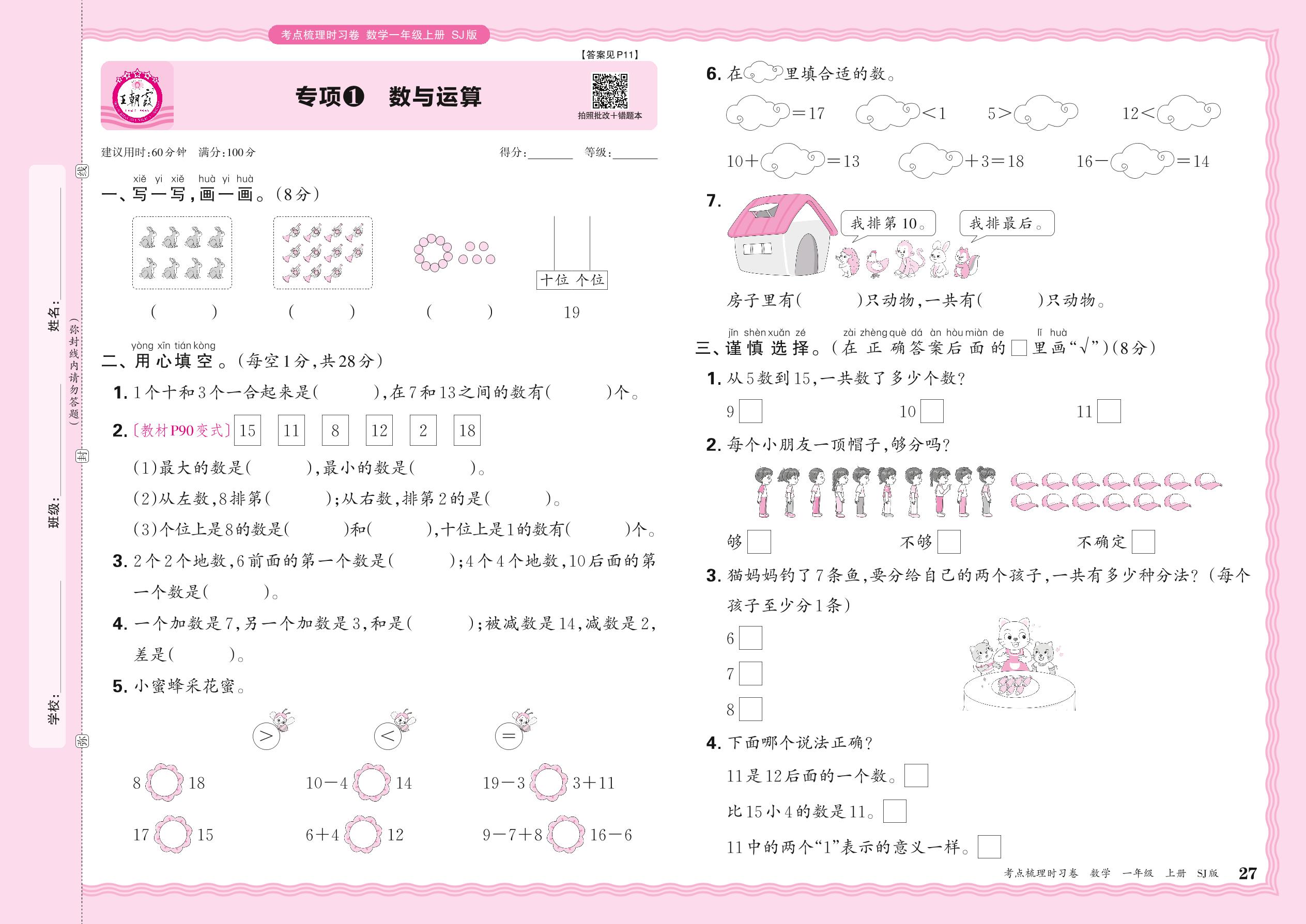 2024秋上册一年级数学苏教版 期末专项卷KD版·数与运算【1】