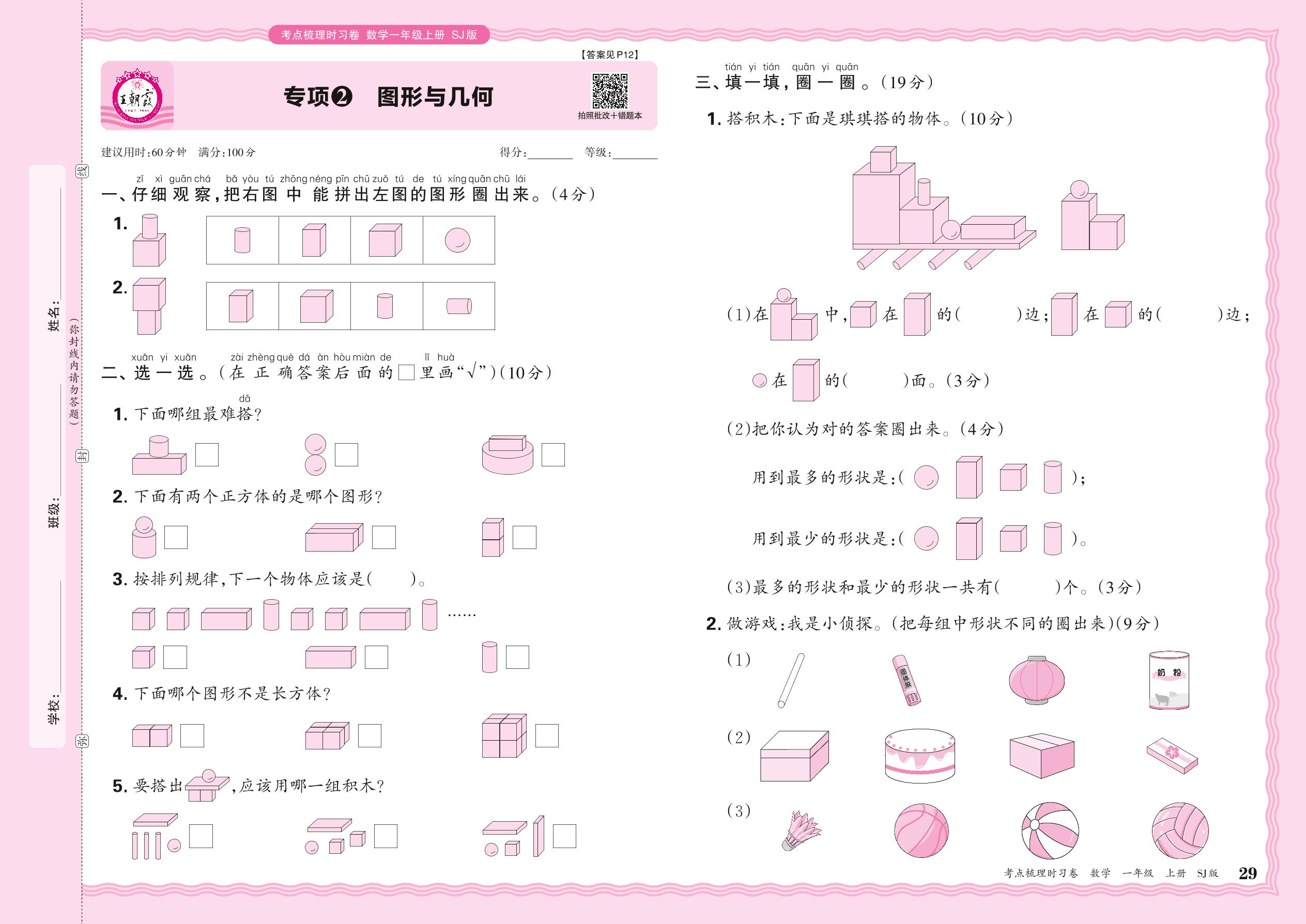 2024秋上册一年级数学苏教版 期末专项卷KD版·图形与几何【2】