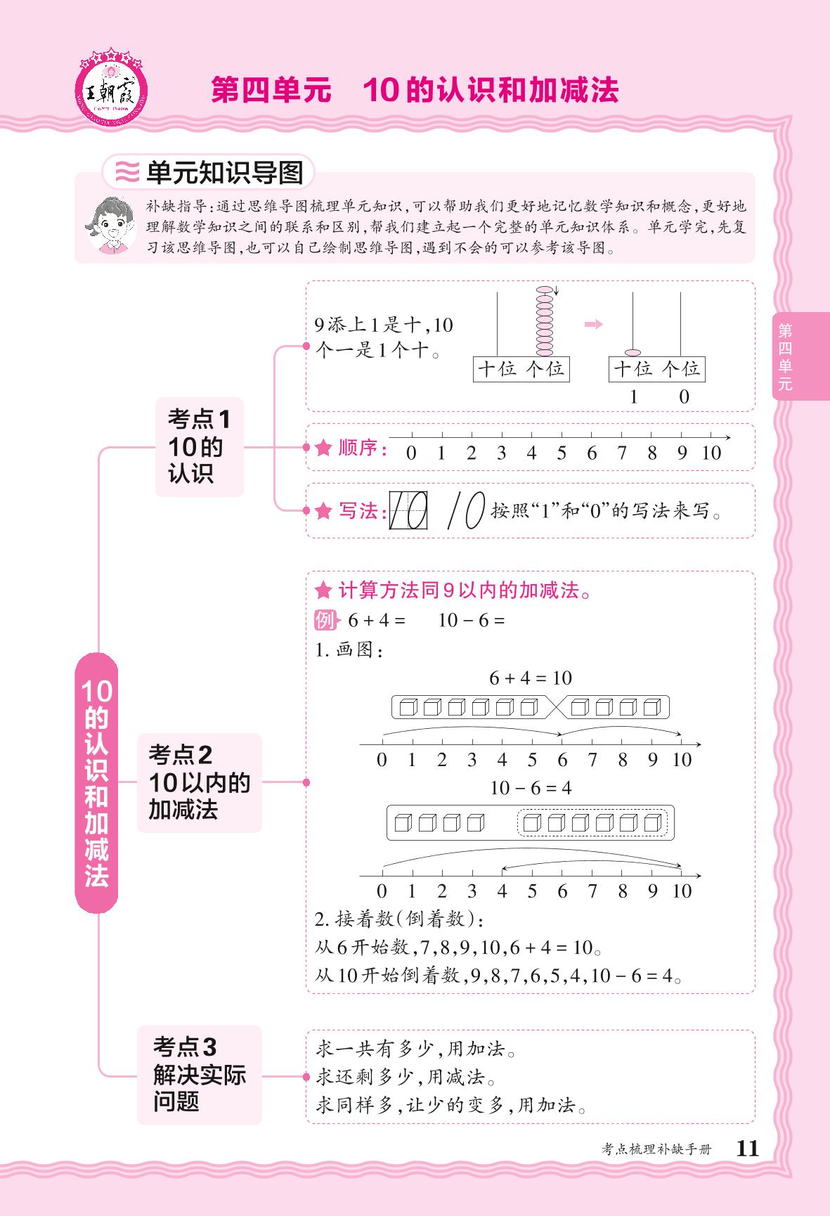 2024秋上册一年级数学苏教版 考点梳理补缺手册——第四单元 10的认识和加减法
