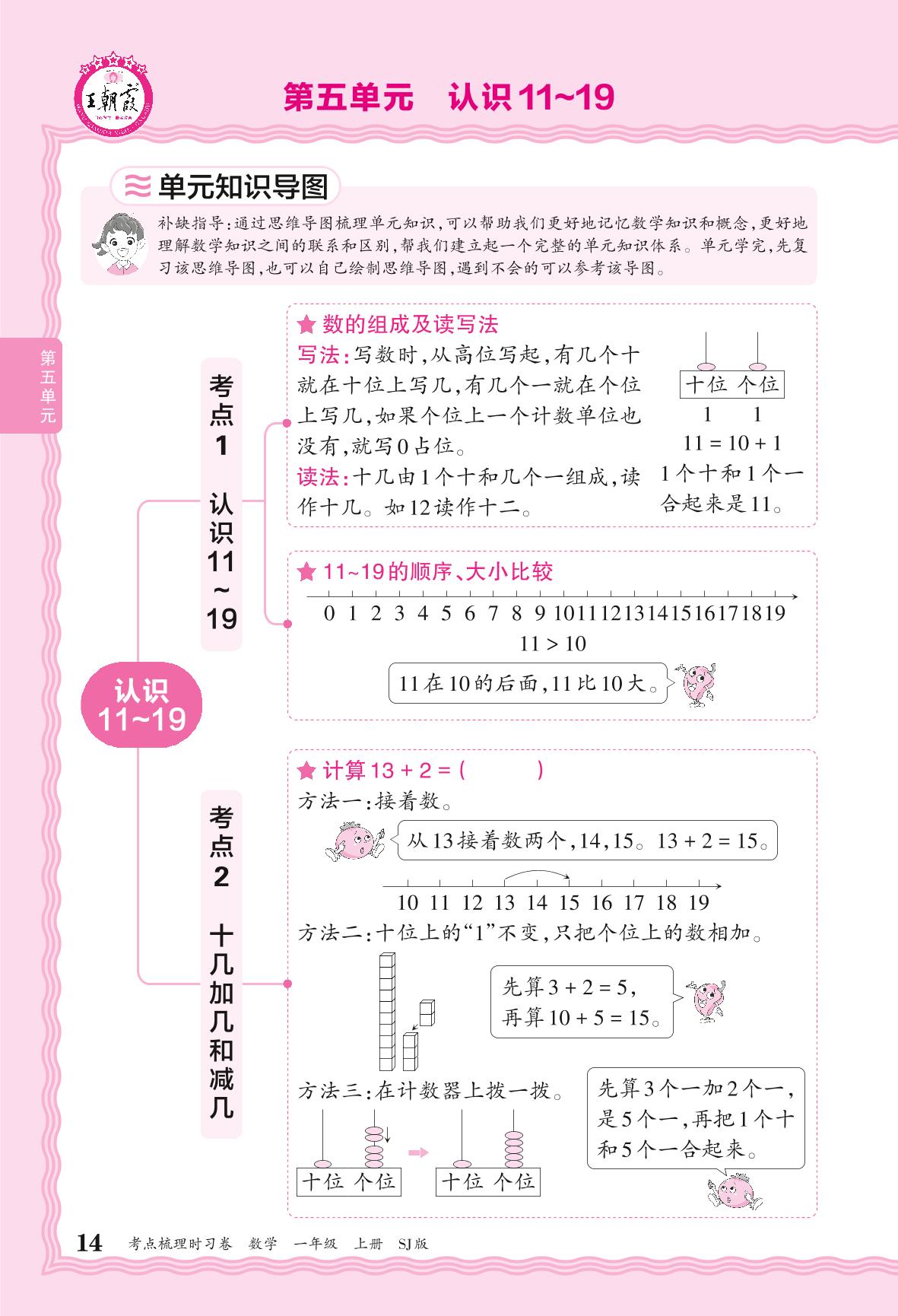 2024秋上册一年级数学苏教版 考点梳理补缺手册——第五单元 认识11~19