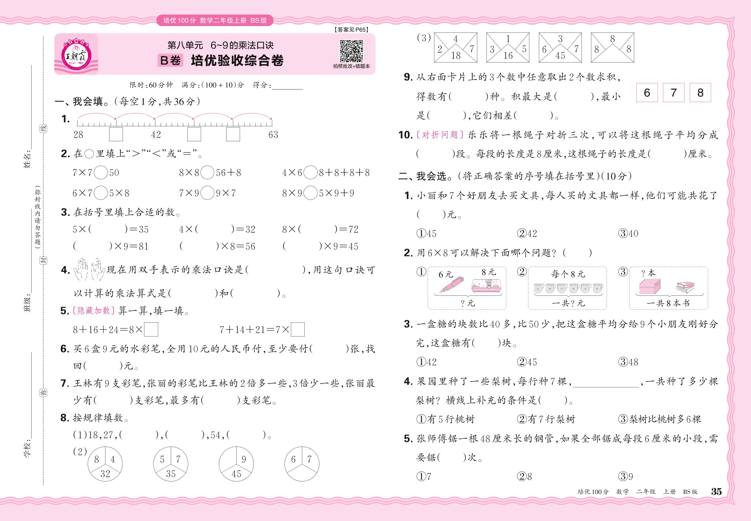 2024秋上册二年级数学北师版 第八单元B卷 培优验收综合卷