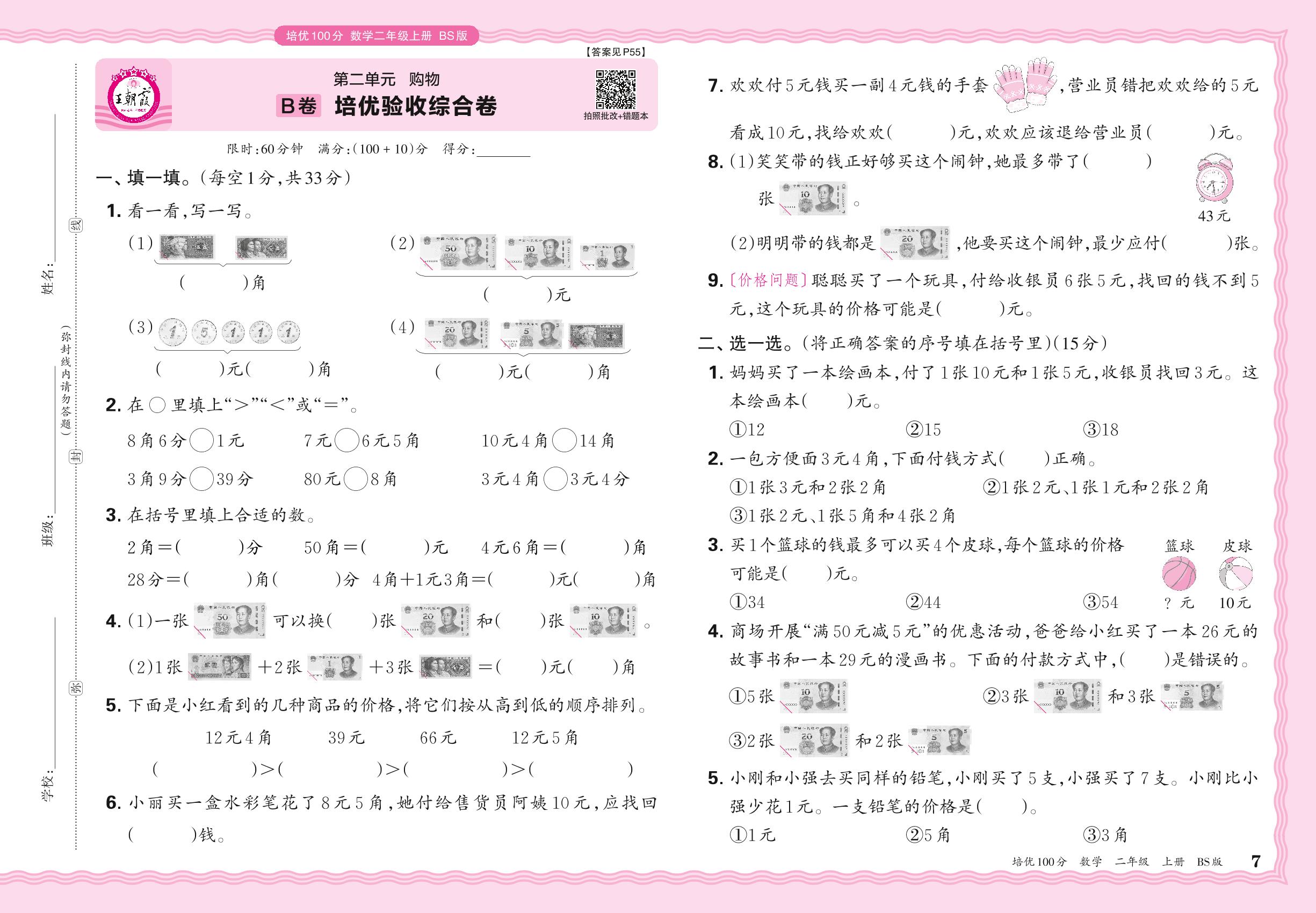 2024秋上册二年级数学北师版 第二单元B卷 培优验收综合卷