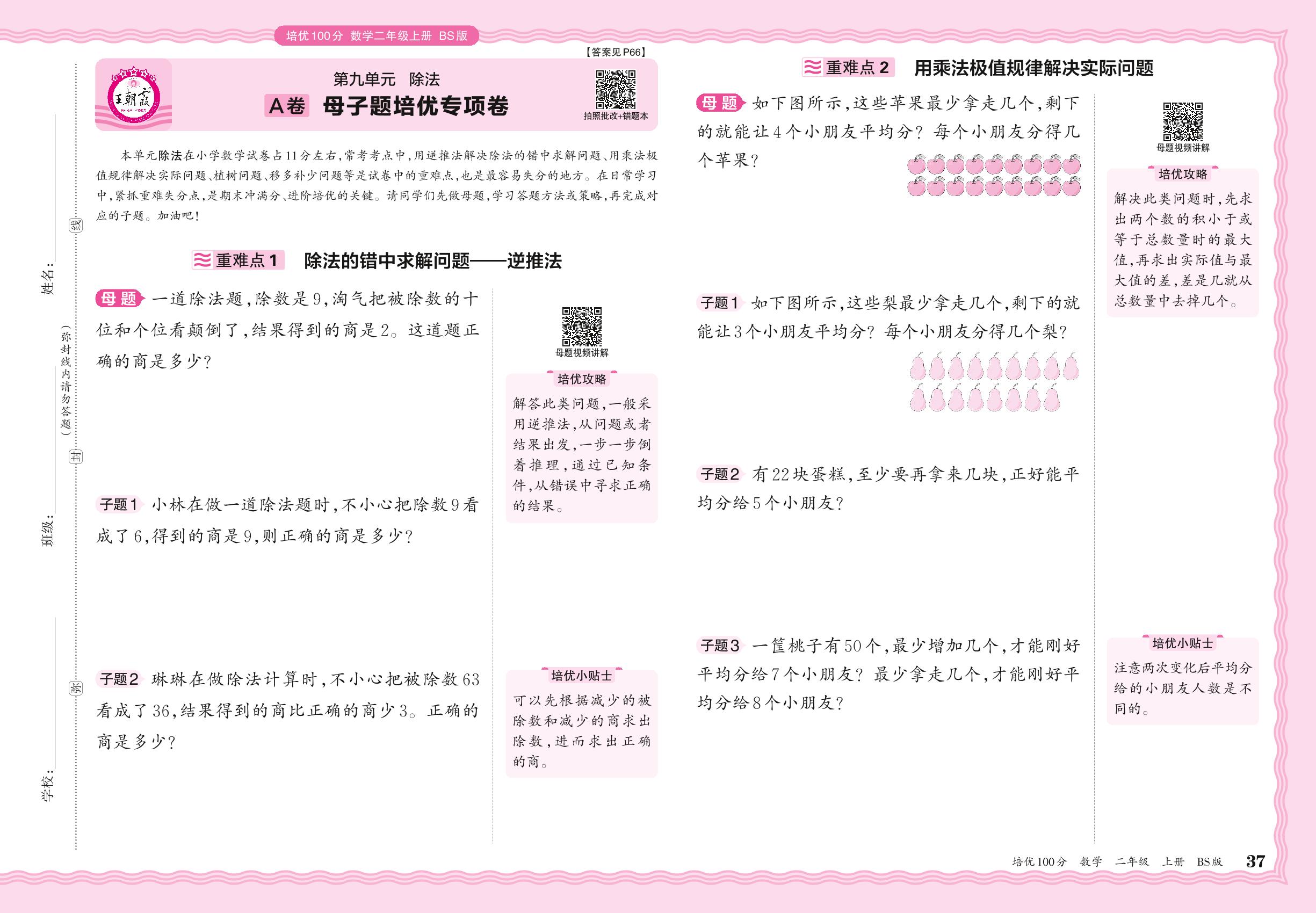 2024秋上册二年级数学北师版 第九单元A卷 母子题培优专项卷