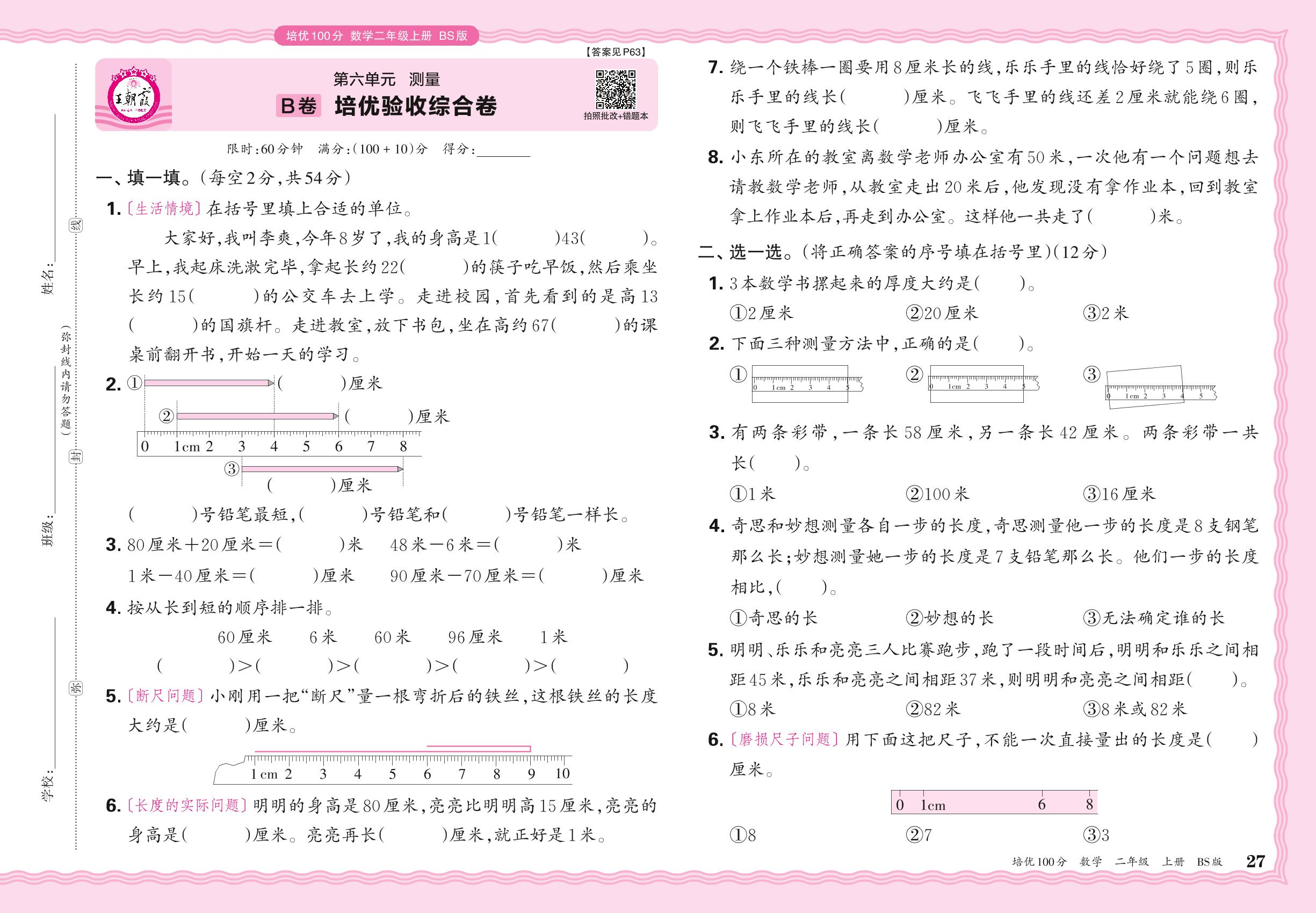 2024秋上册二年级数学北师版 第六单元B卷 培优验收综合卷