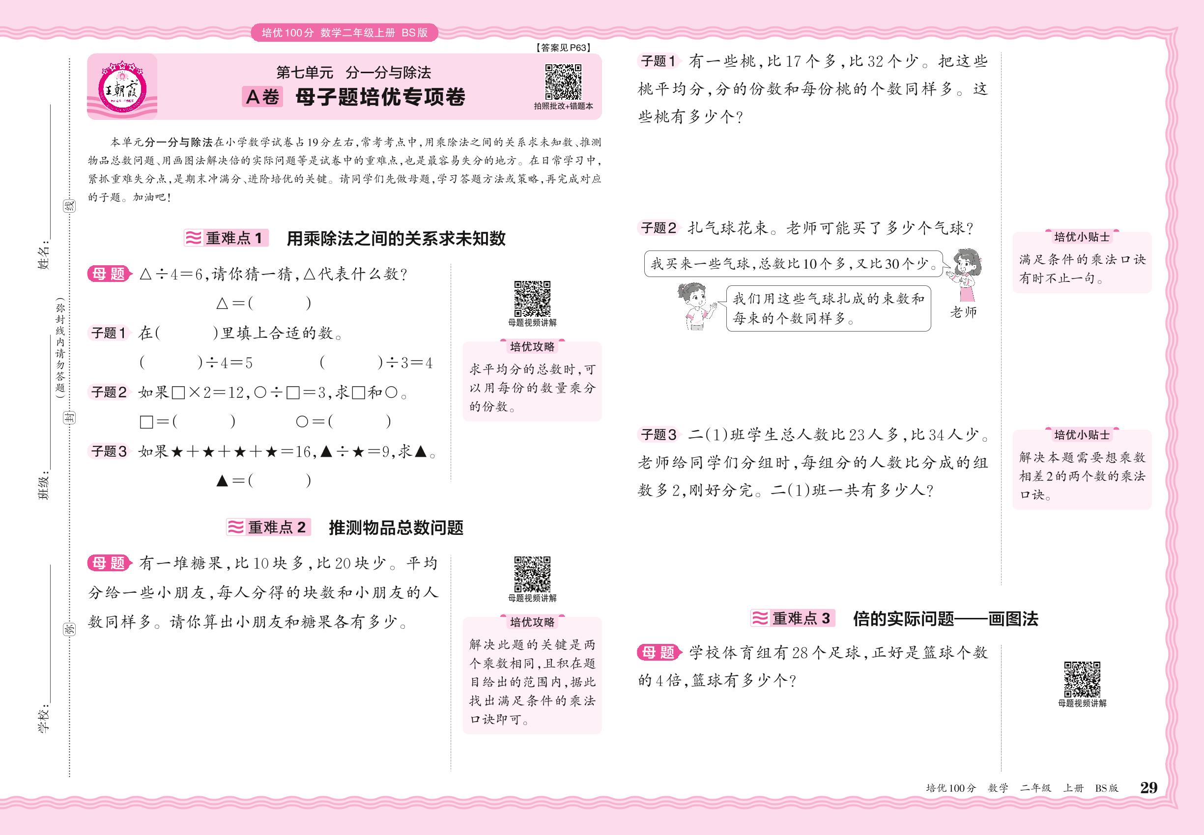 2024秋上册二年级数学北师版 第七单元A卷 母子题培优专项卷
